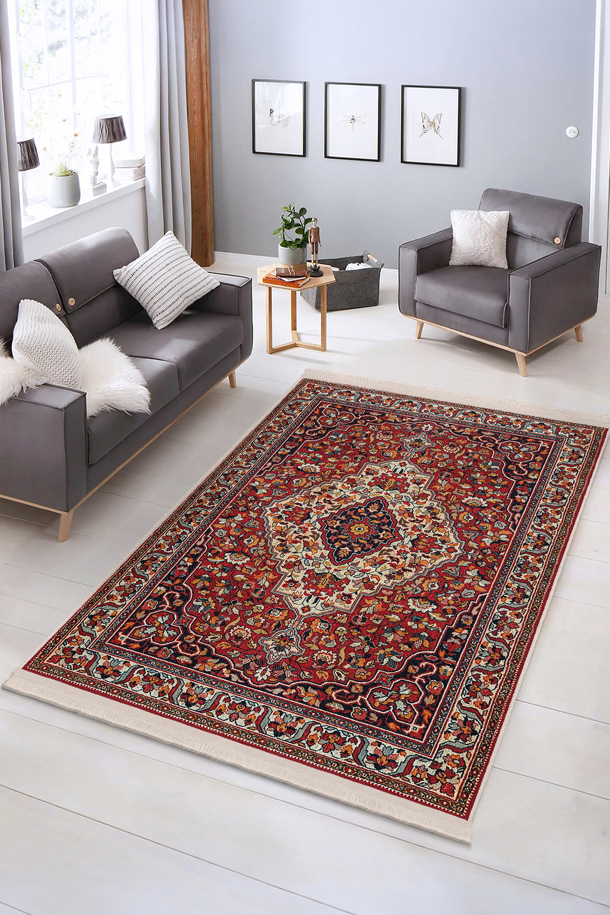 Kırmızı Zemin Üzerinde Geleneksel Desenli Şık Salon Halısı - Makinede Yıkanabilir Kaymaz Taban Halı Kırmızı Zemin Üzerinde Geleneksel Desenli Şık Salon Halısı - Makinede Yıkanabilir Kaymaz Taban Halı DikHali-11082 160 x 230