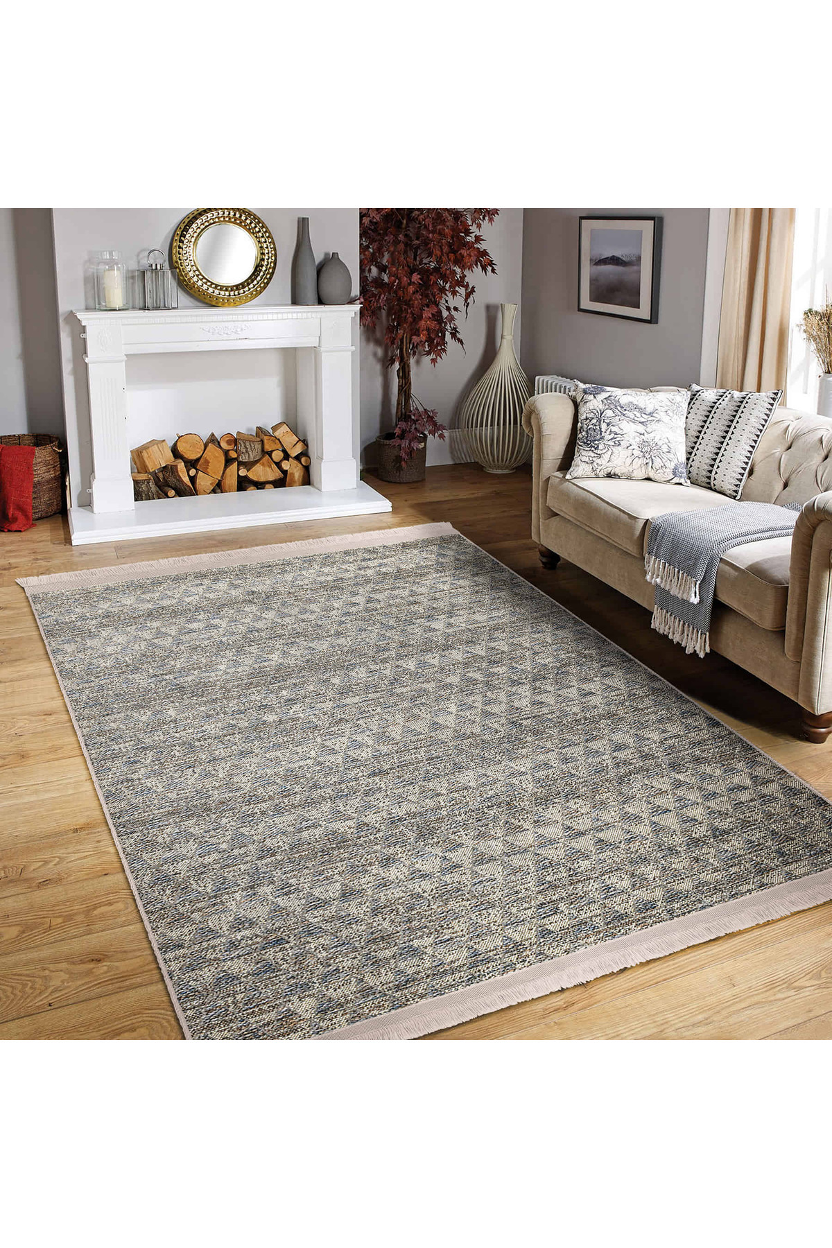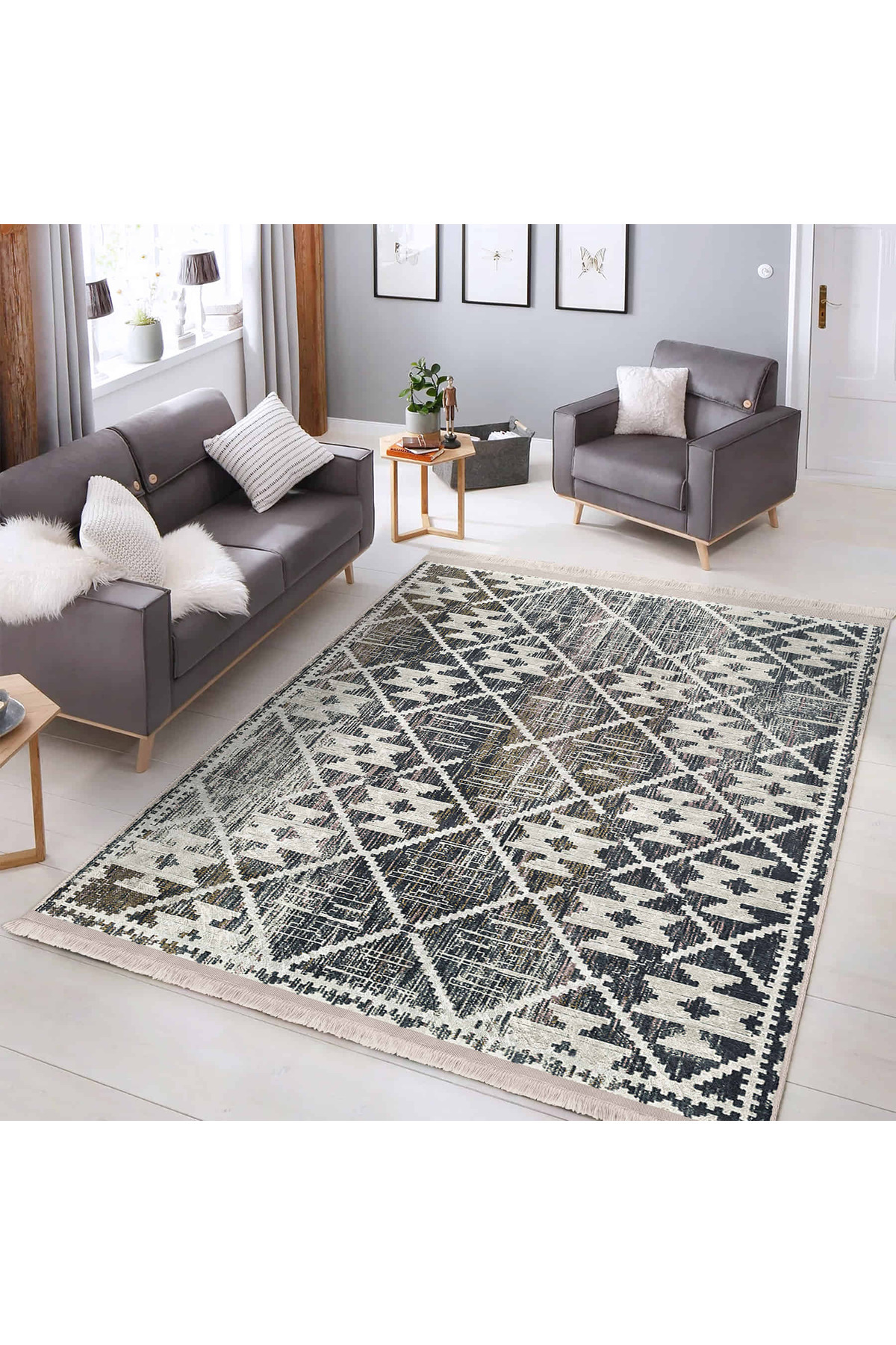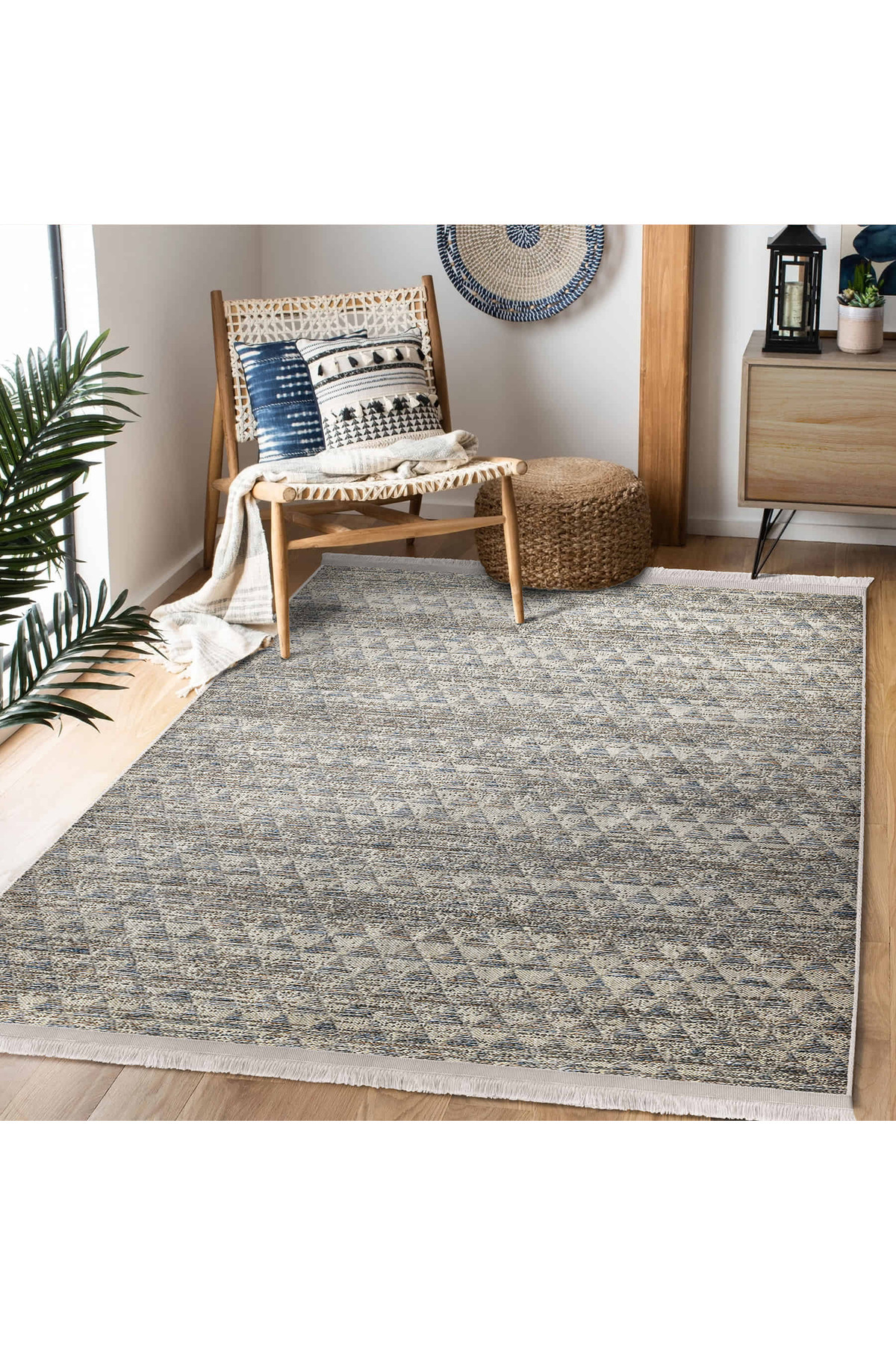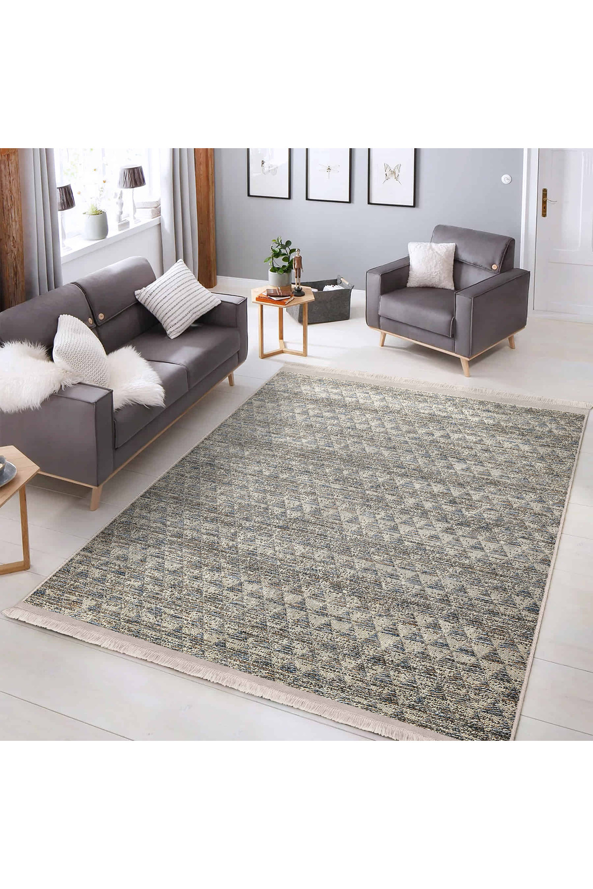 Gri - Bej Zemin Üzerinde Modern Üçgen Desenli Salon Halısı Yıkanabilir Kaymaz Tabanlı Gri - Bej Zemin Üzerinde Modern Üçgen Desenli Salon Halısı Yıkanabilir Kaymaz Tabanlı DikHali-11072 160 x 230