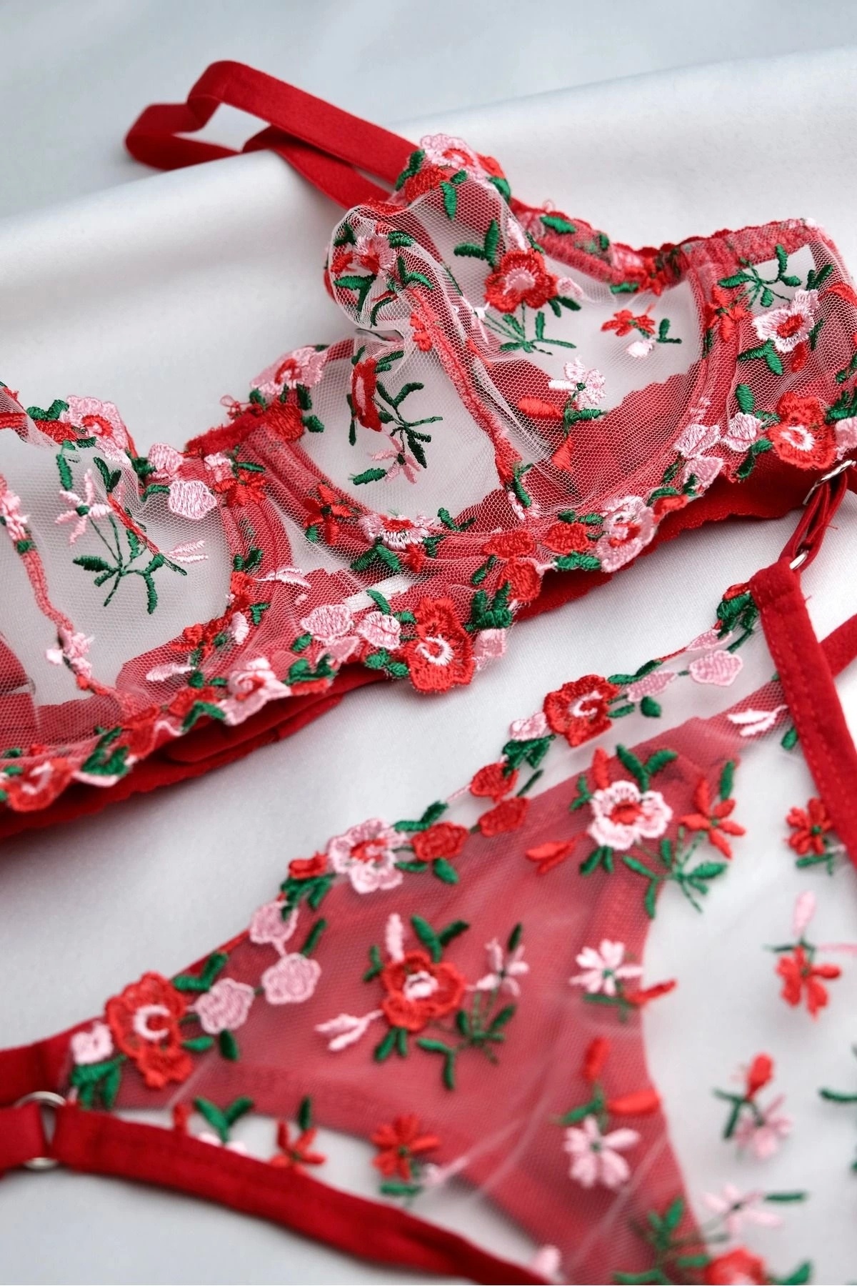 Brode Kırmızı Çiçekli Dantel İşlemeli Sütyen Takım- Balenli, Kapsız, Transparan Brode Kırmızı Çiçekli Dantel İşlemeli Sütyen Takım- Balenli, Kapsız, Transparan swt.cicek.kırmızı 90B