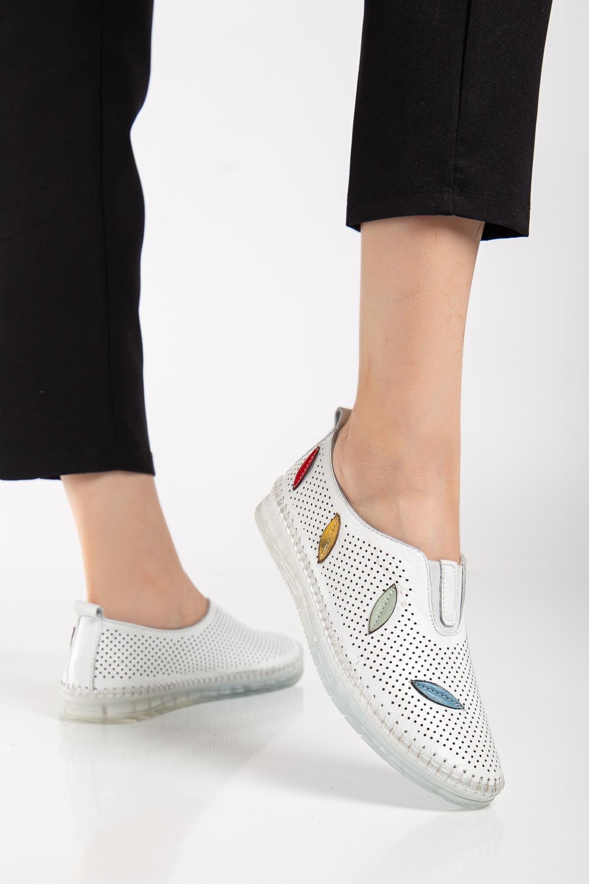 Hakiki Deri Ortopedik Kadın Günlük Ayakkabı Beyaz Lazer Yaprak Desenli Hakiki Deri Ortopedik Kadın Günlük Ayakkabı Beyaz Lazer Yaprak Desenli 162-515-DERI