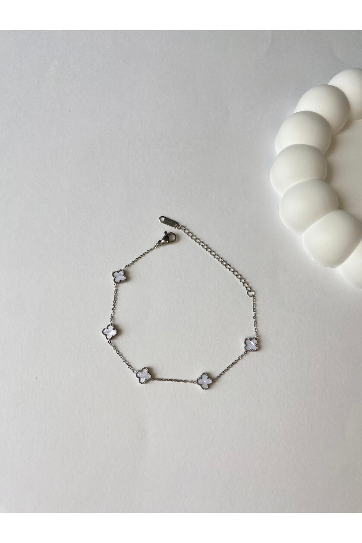 Beyaz Taşlı Silver Çift Yönlü Yonca Van Cleff Mini Boy Çelik Bileklik Beyaz Taşlı Silver Çift Yönlü Yonca Van Cleff Mini Boy Çelik Bileklik KPS294 18