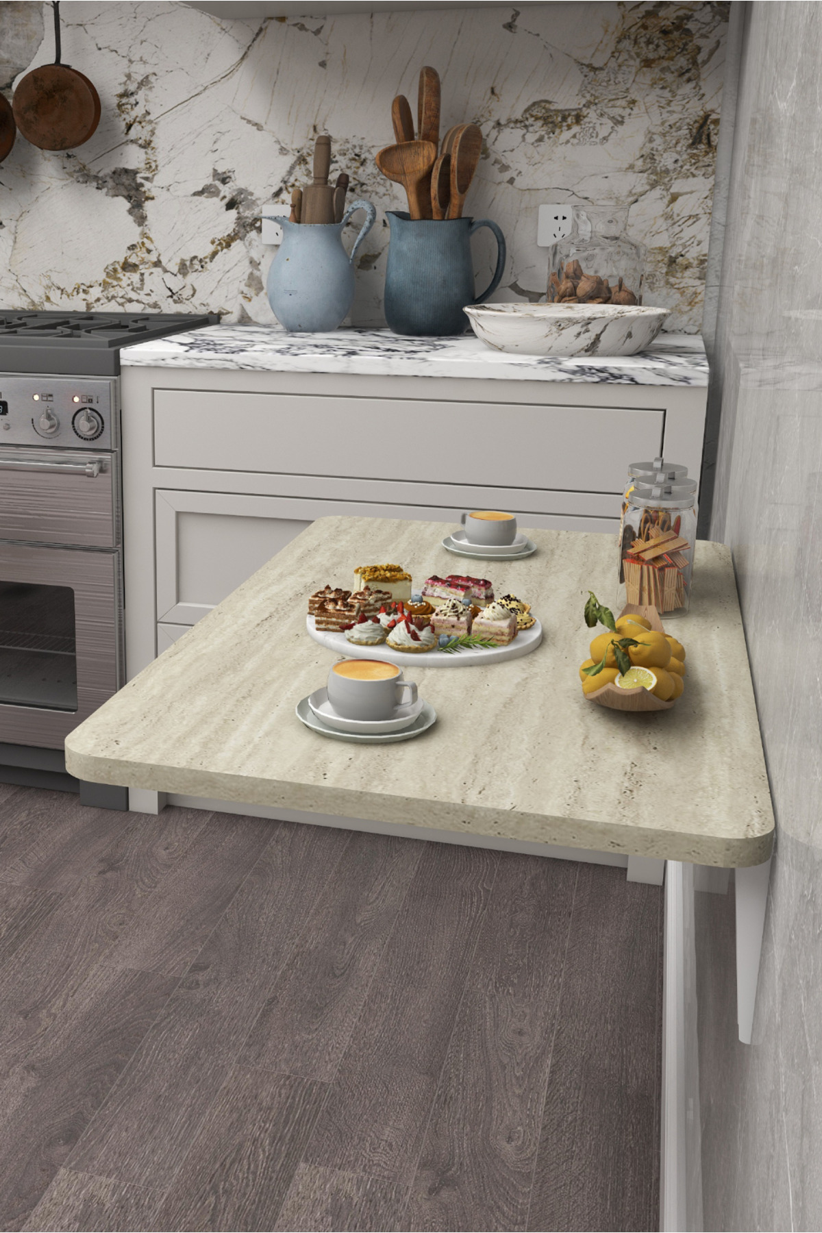 60x90 cm İskandinav Tarzı Duvara Monte Katlanır Masa – Traverten Desenli, Oval Köşeli 60x90 cm İskandinav Tarzı Duvara Monte Katlanır Masa – Traverten Desenli, Oval Köşeli kydoniatrvn90 60 x 110
