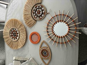 Aylak Şeyler Bohem turuncu detaylı rafya dekor,bambu ayna seti Aylak Şeyler Bohem turuncu detaylı rafya dekor,bambu ayna seti deko3673637737 40 cm