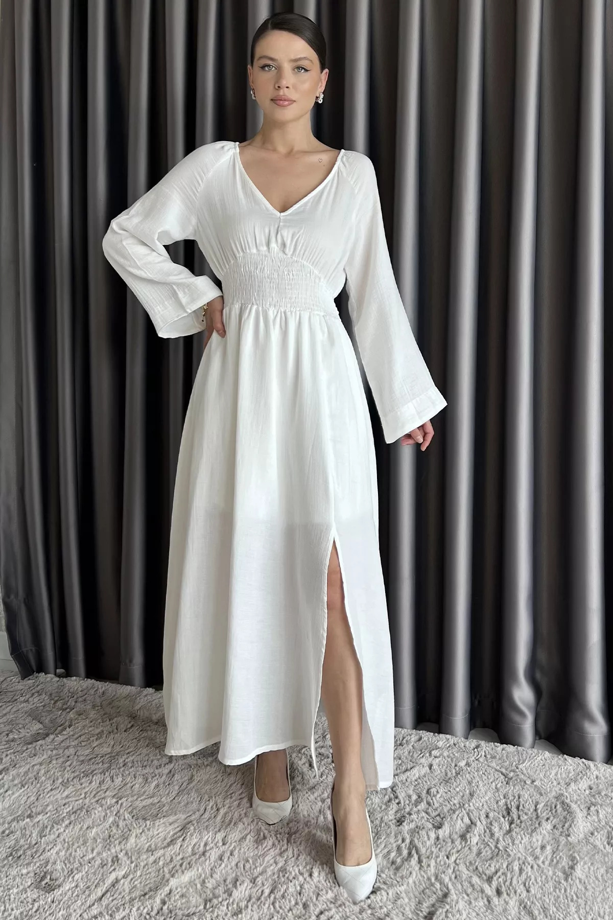 Pamuklu Bohem V Yakalı Uzun Kollu Uzun Elbise Pamuklu Bohem V Yakalı Uzun Kollu Uzun Elbise bohem L/XL