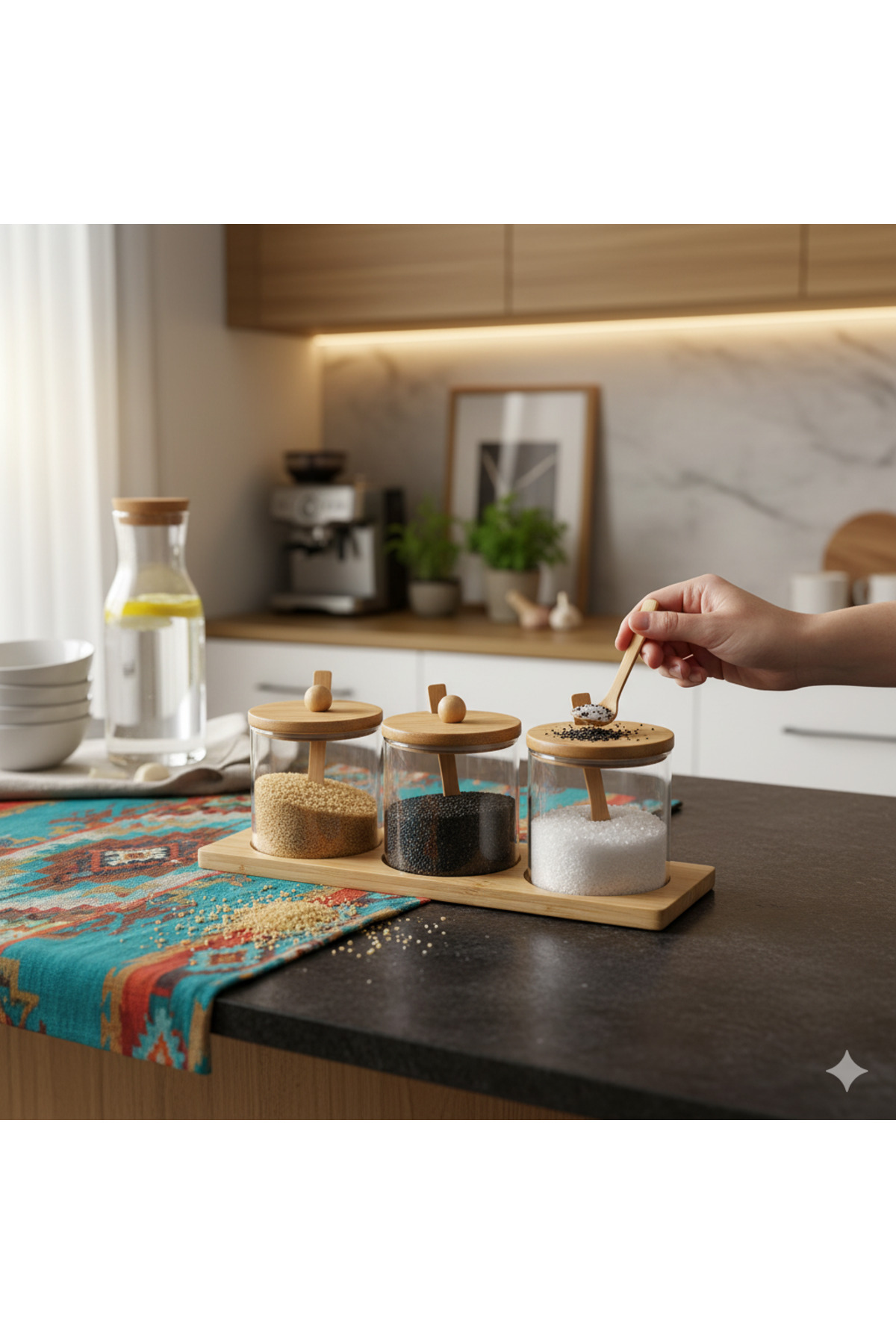 Cam Baharatlık Seti Bambu Standlı Kapaklı Kaşıklı Şık 3 Parça, 3'lü Cam Baharatlık artworks Cam Baharatlık Seti Bambu Standlı Kapaklı Kaşıklı Şık 3 Parça, 3'lü Cam Baharatlık artworks aw2013 تک سایز
