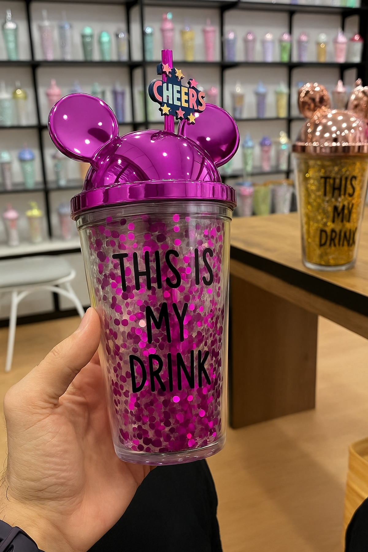 Mickey Mouse Kulaklı Simli Pipetli Bardak – "THIS IS MY DRINK" Yazılı Mickey Mouse Kulaklı Simli Pipetli Bardak – "THIS IS MY DRINK" Yazılı CEVİZHOME45 تک سایز