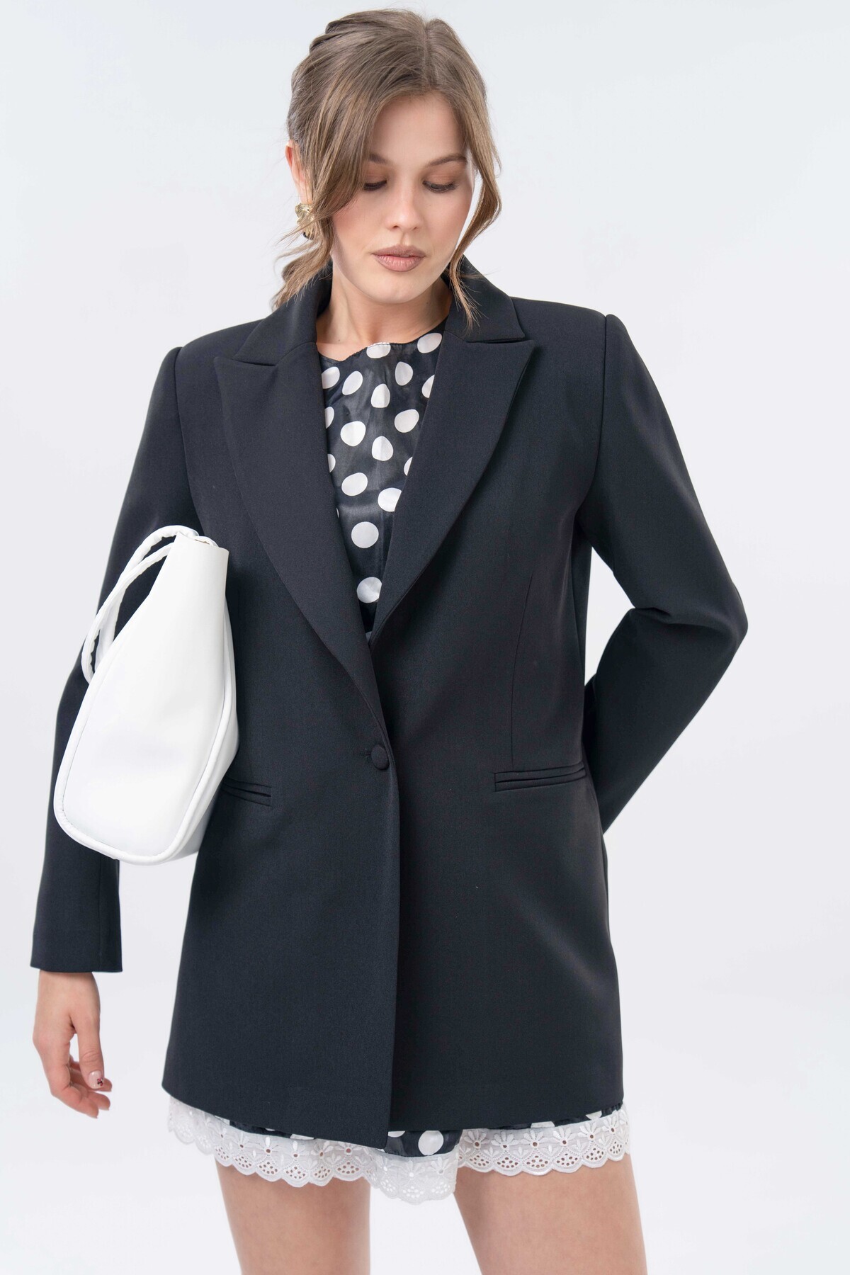 Siyah Tek Düğme Kapama Cepli Dokuma Blazer Ceket Siyah Tek Düğme Kapama Cepli Dokuma Blazer Ceket SD/MYAZ24CK0820 46