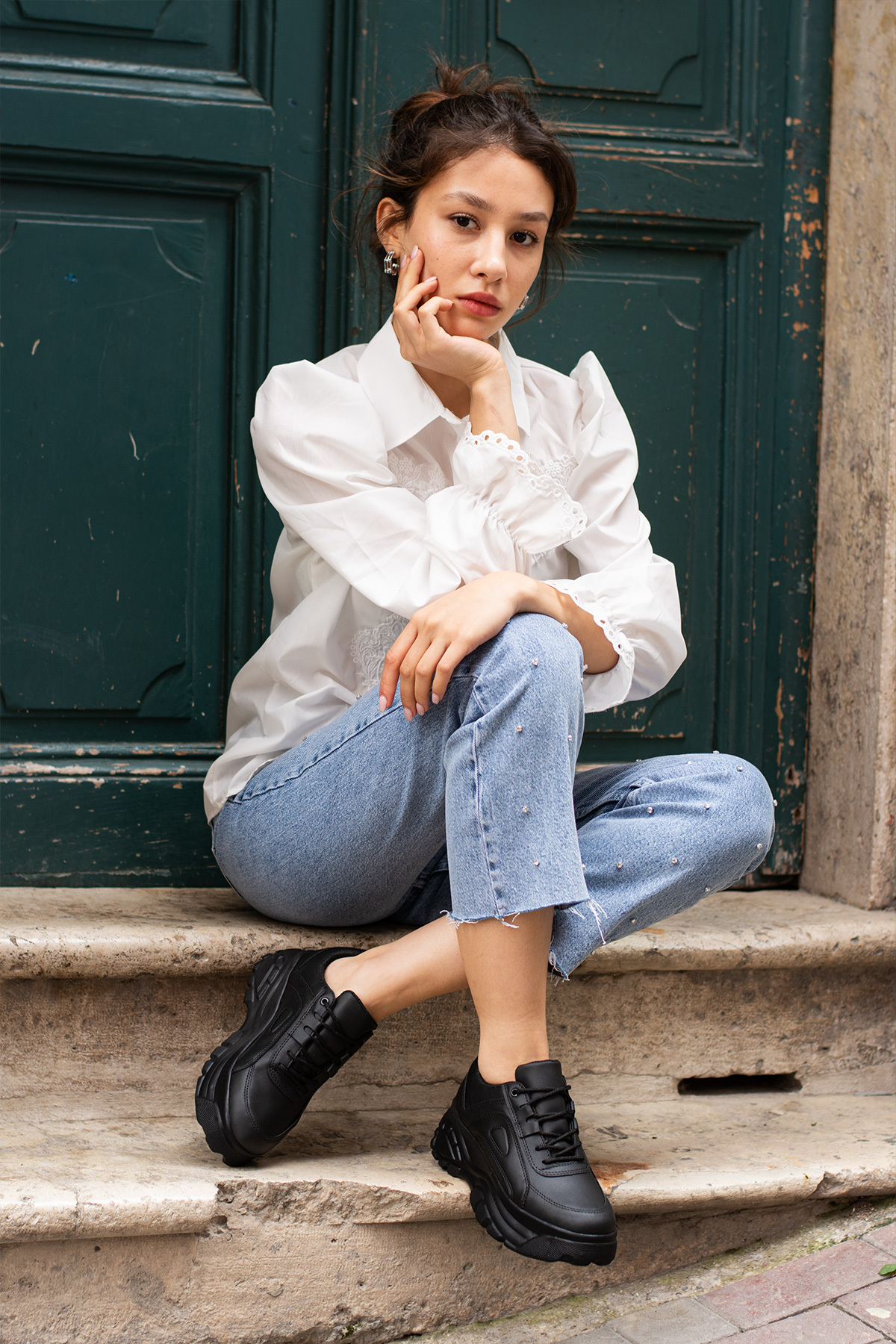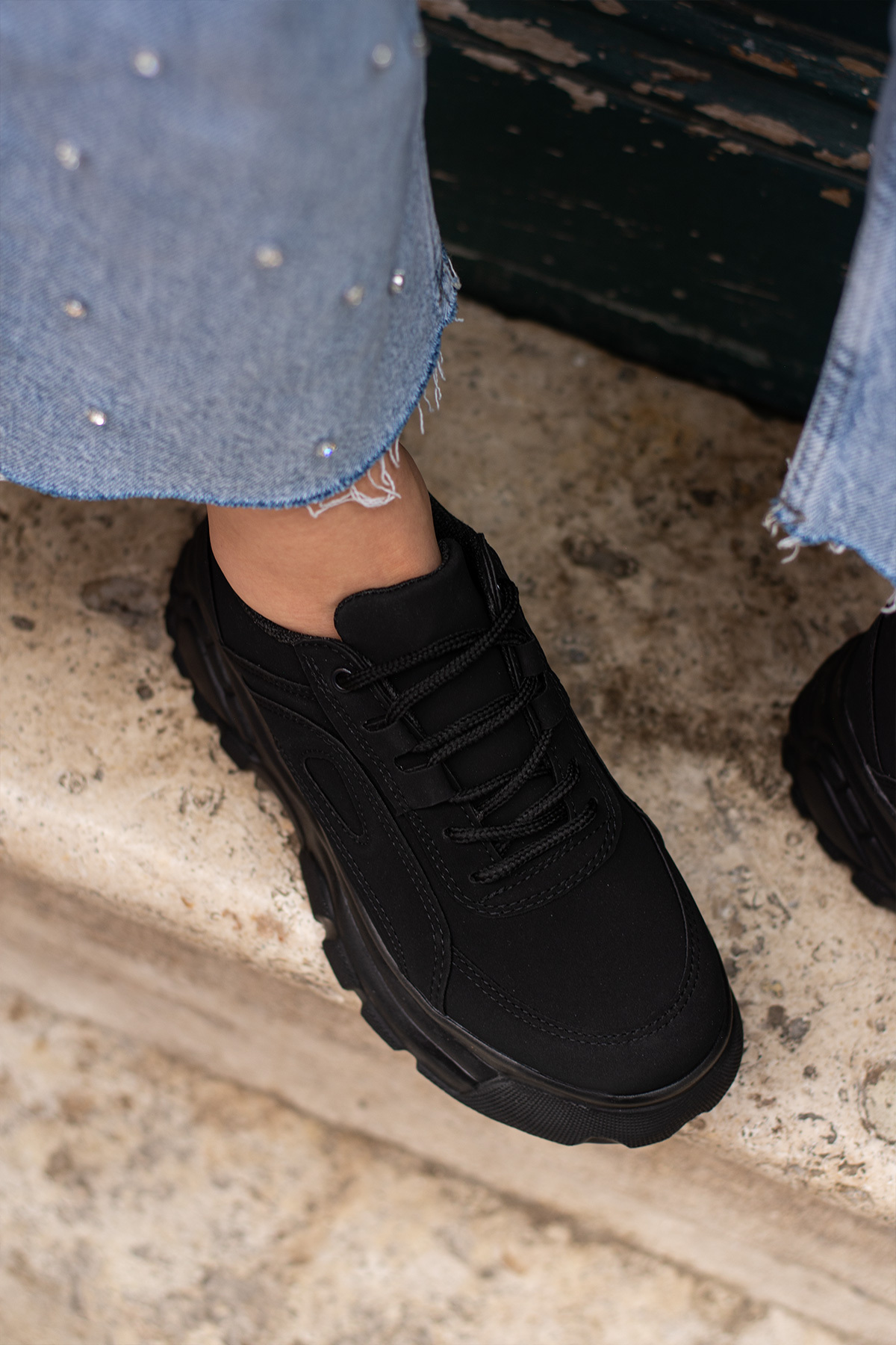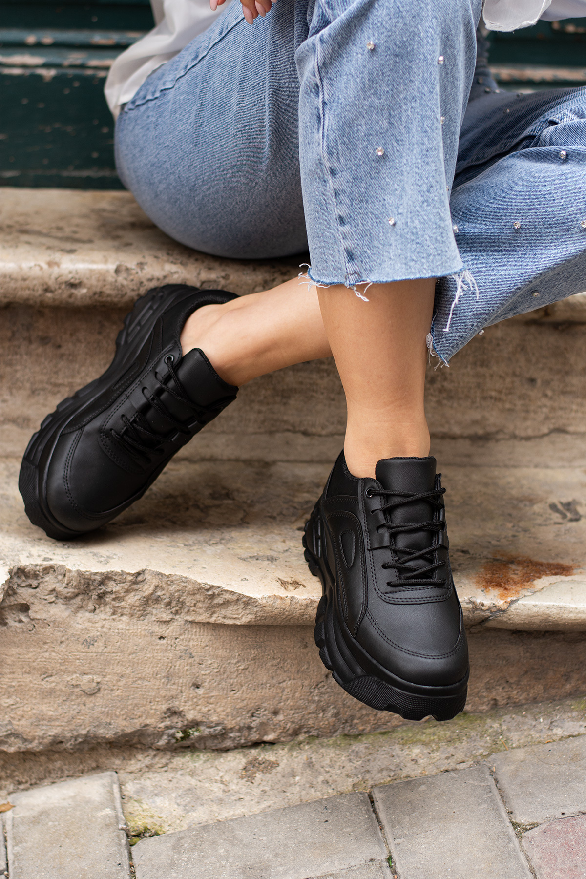 Siyah Günlük Kadın Spor Ayakkabı Bağcıklı Kalın Hafif Yüksek Taban Sneaker Siyah Günlük Kadın Spor Ayakkabı Bağcıklı Kalın Hafif Yüksek Taban Sneaker 1977 40