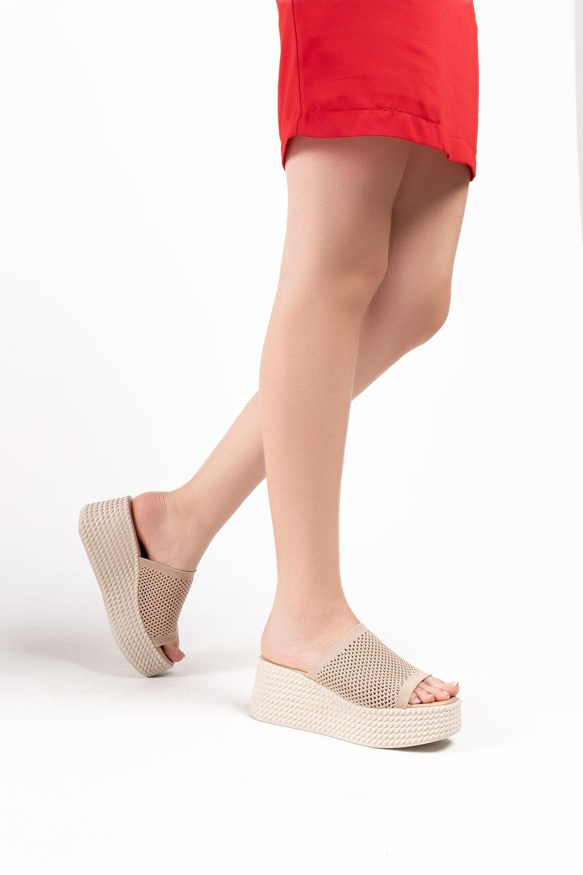 Tilda Kadın Bej Taşlı Dolgu Topuklu Terlik Tilda Kadın Bej Taşlı Dolgu Topuklu Terlik TPK0017 40