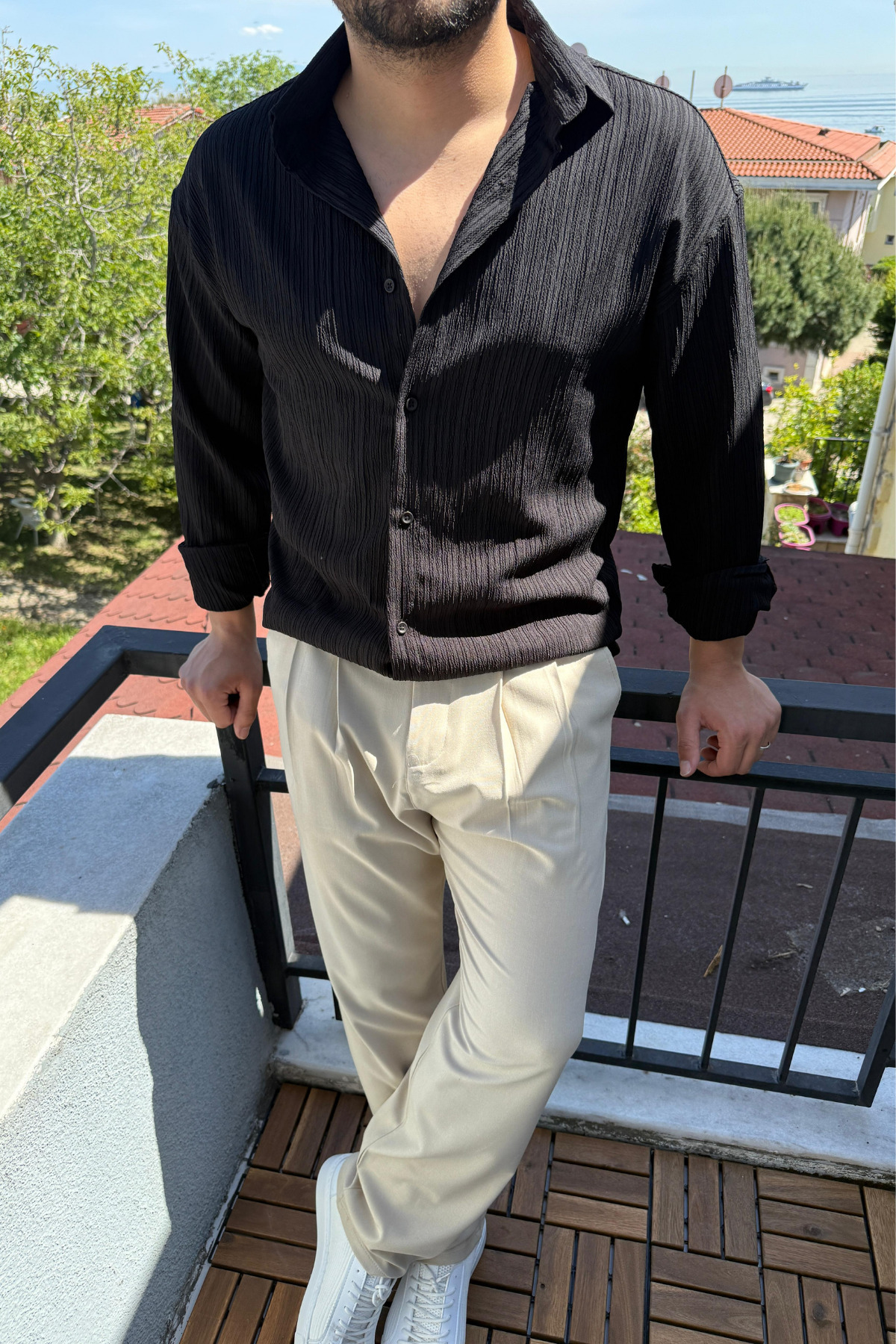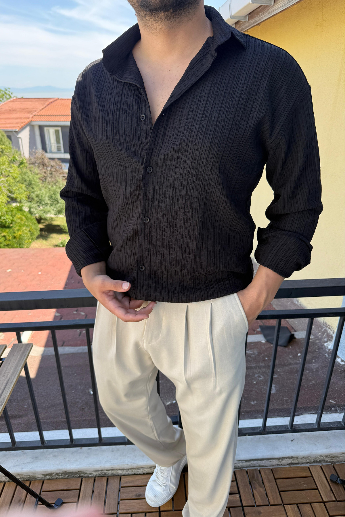Tam Kalıp Bürümcük Kumaş Gömlek Zümrüt Siyah Tam Kalıp Bürümcük Kumaş Gömlek Zümrüt Siyah BRMGMLK025 2XL