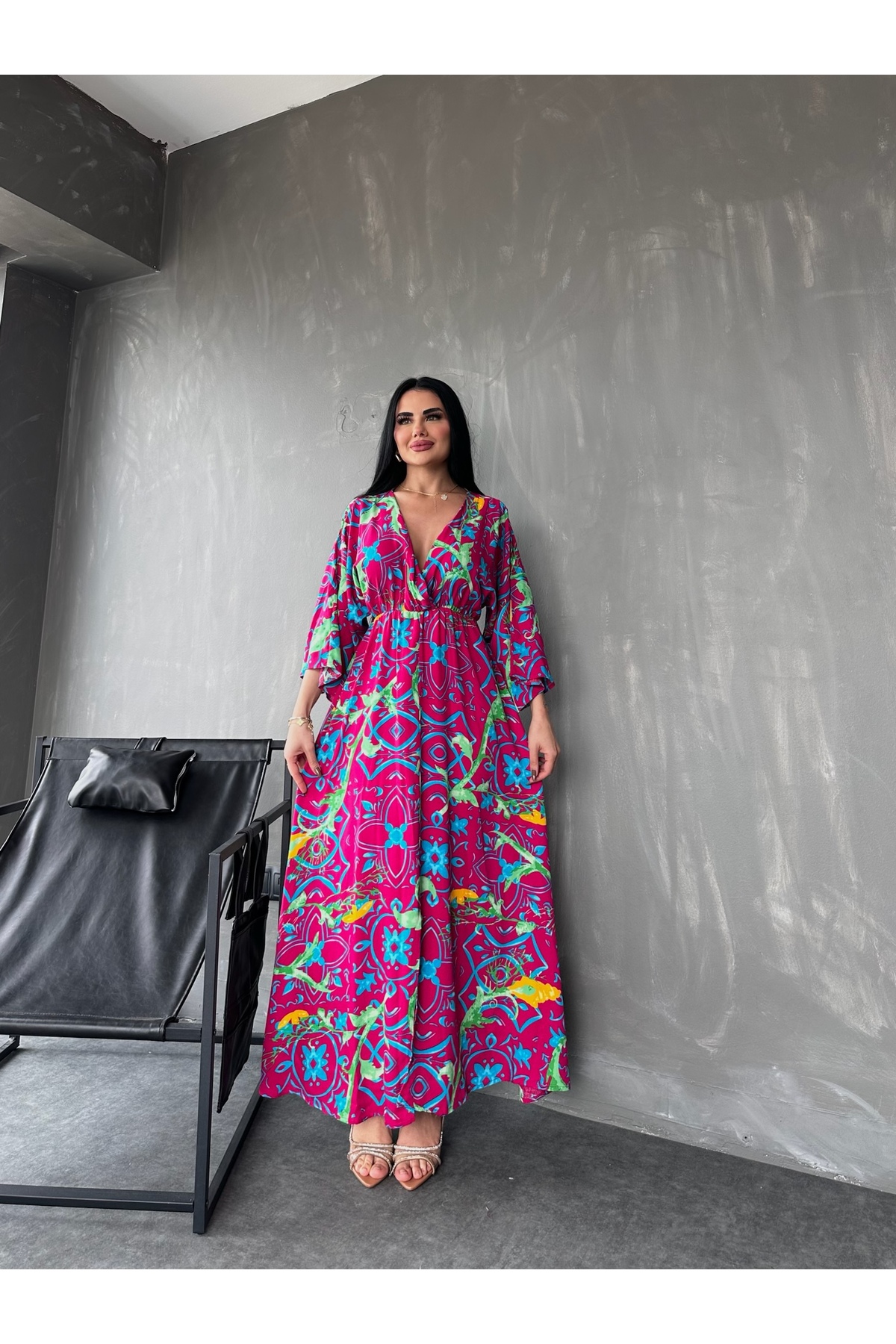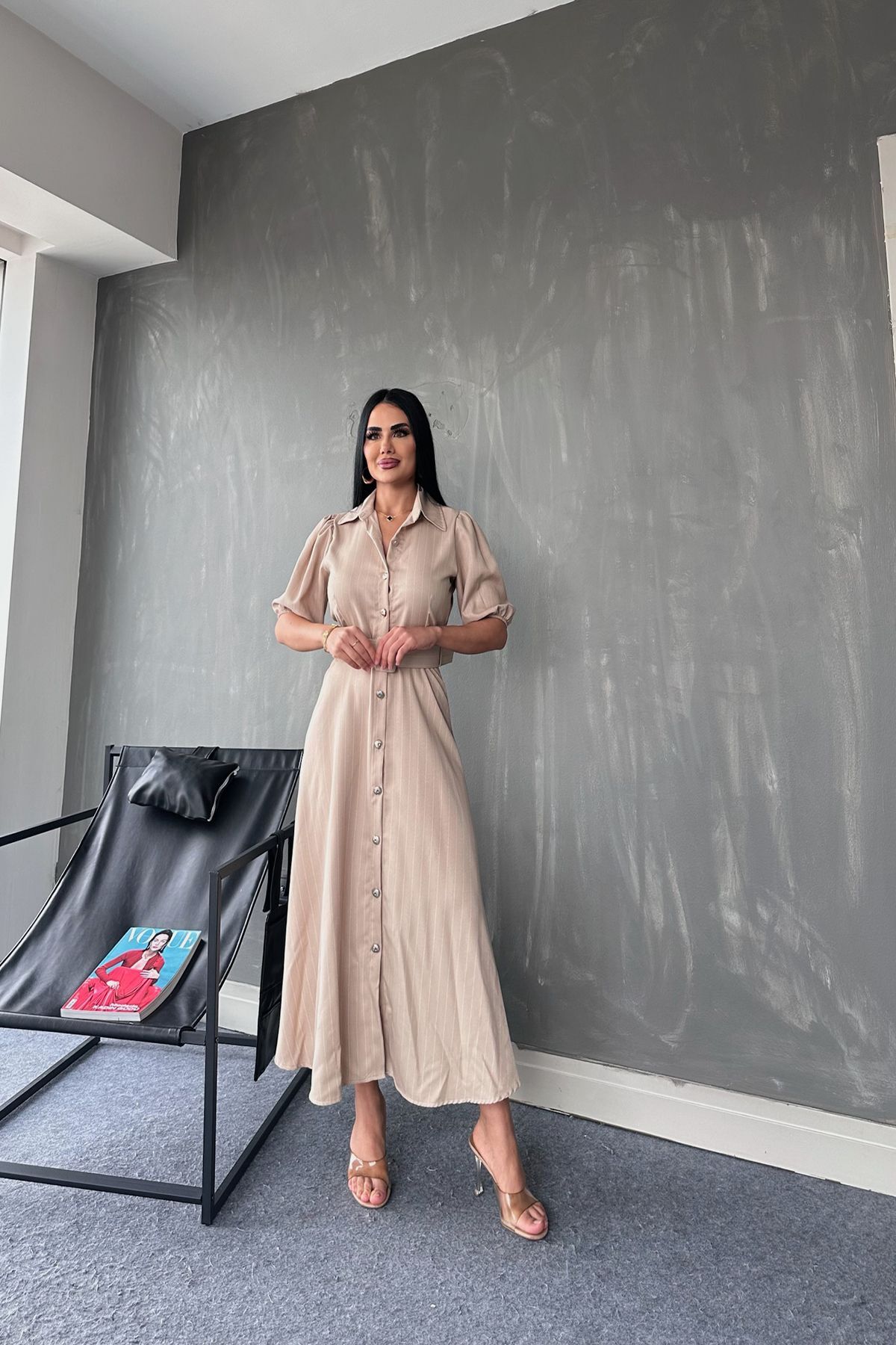 Gömlek Yaka Kemerli Düğmeli Desenli Yazlık Elbise Gömlek Yaka Kemerli Düğmeli Desenli Yazlık Elbise LLSTNBL-1203 XL