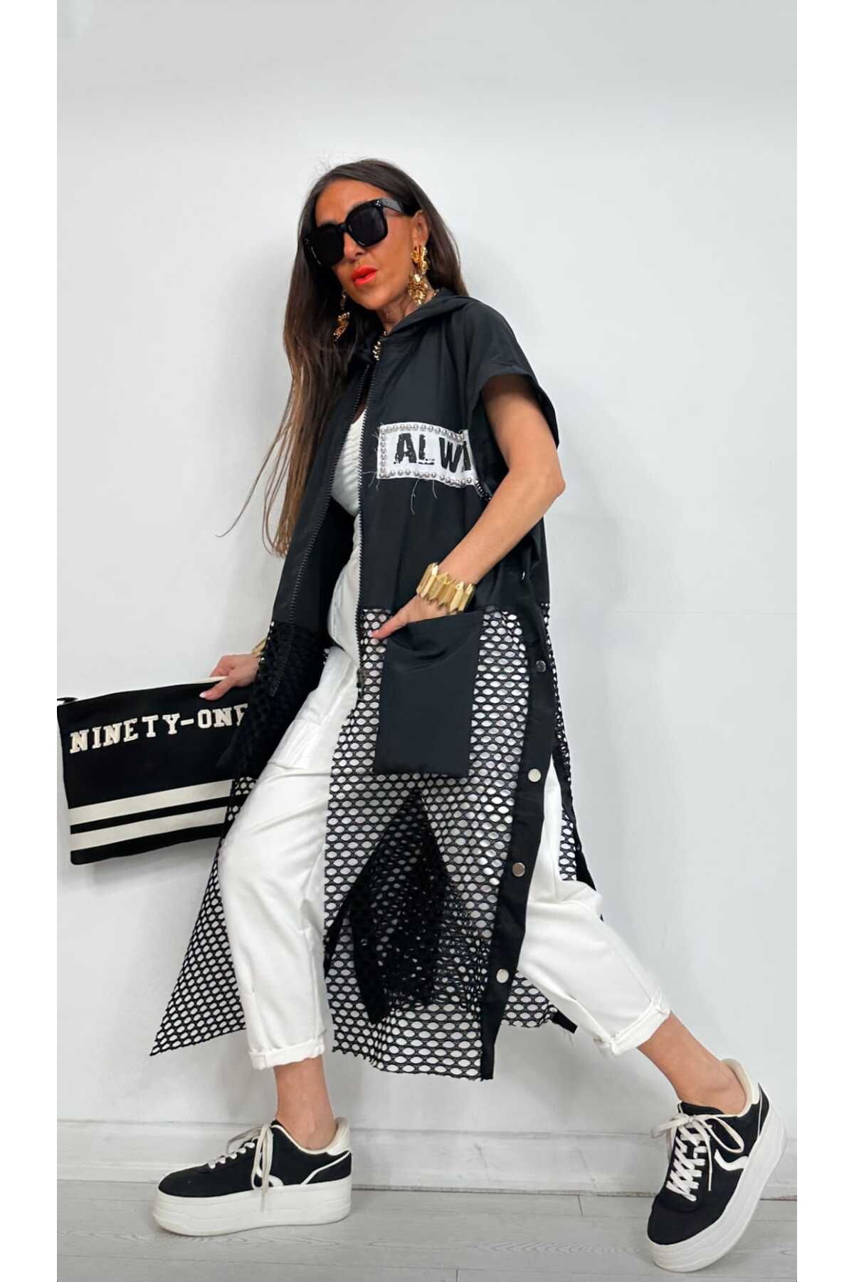 Kadın Siyah File Detay Poplin Fermuarlı Uzun Yelek Kadın Siyah File Detay Poplin Fermuarlı Uzun Yelek DQ000066-66 XL