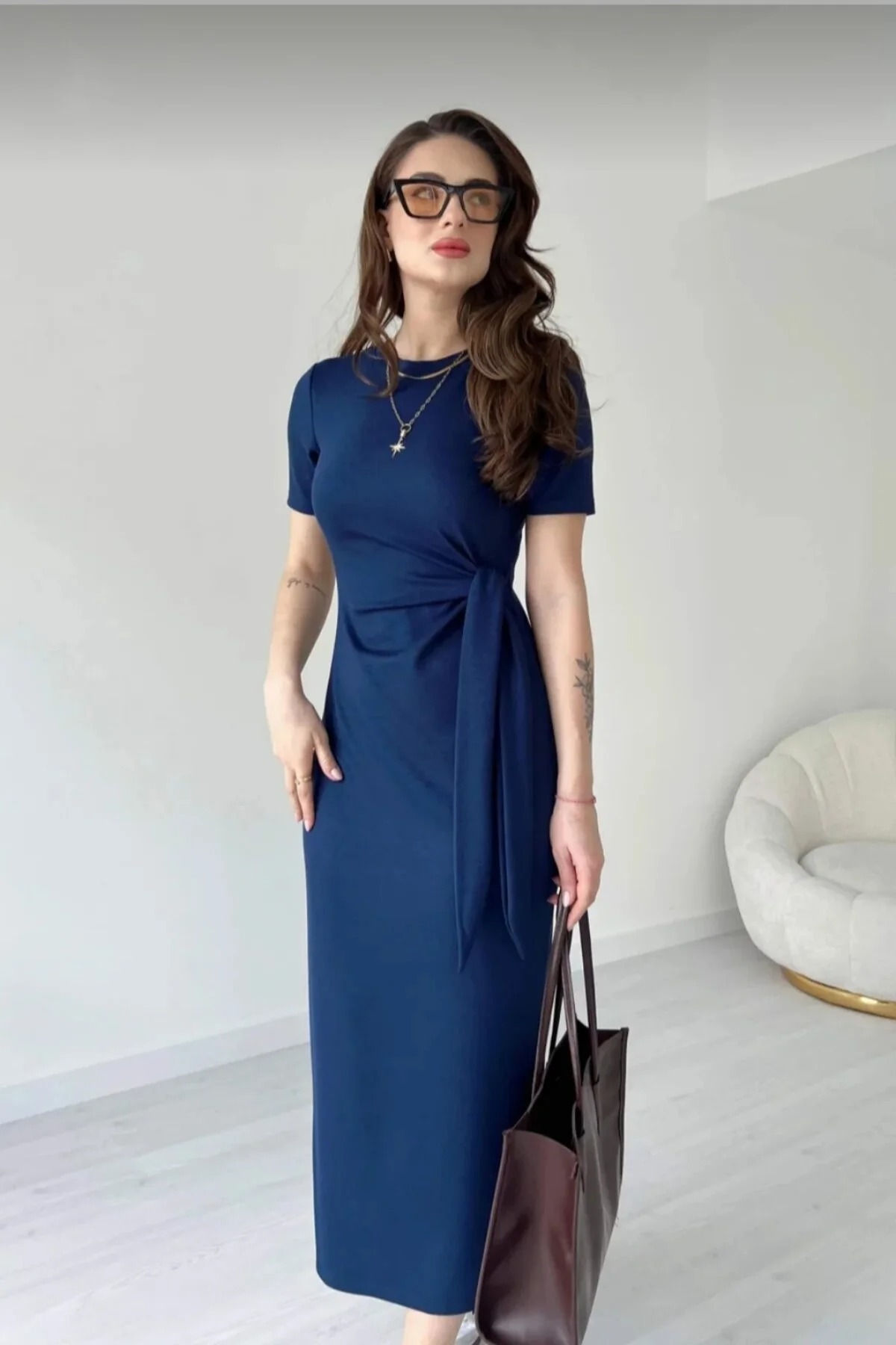 Kadın Lacivert Yırtmaç Detaylı Basic Elbise Kadın Lacivert Yırtmaç Detaylı Basic Elbise 9002 L