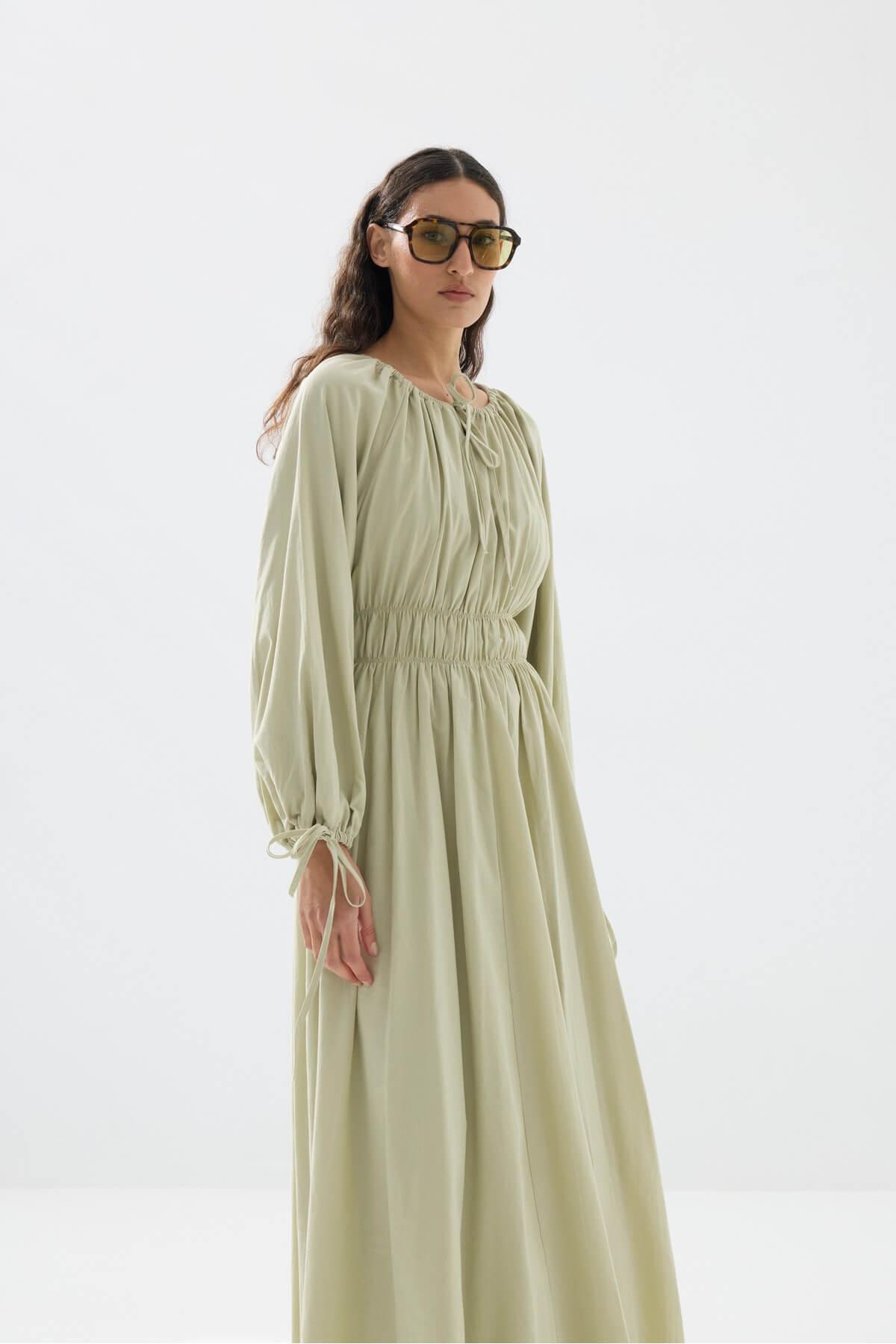 Beli Büzgülü Vual Elbise - Ada çayı Beli Büzgülü Vual Elbise - Ada çayı TR-VAL-ELB-093 M/L