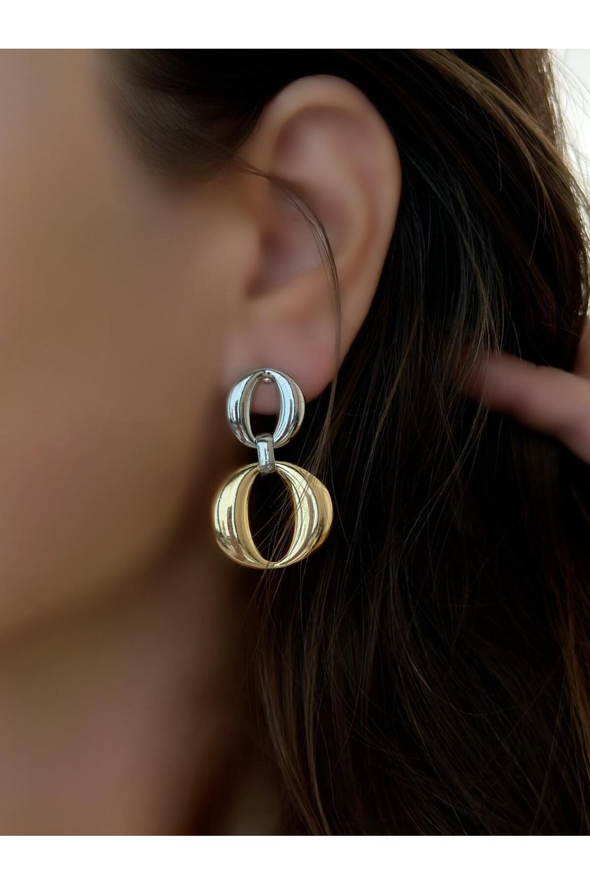 Çift Renk Ve Zirkon Taş Detay Halka Küpe (Çelik) Çift Renk Ve Zirkon Taş Detay Halka Küpe (Çelik) Myl0000012880 تک سایز