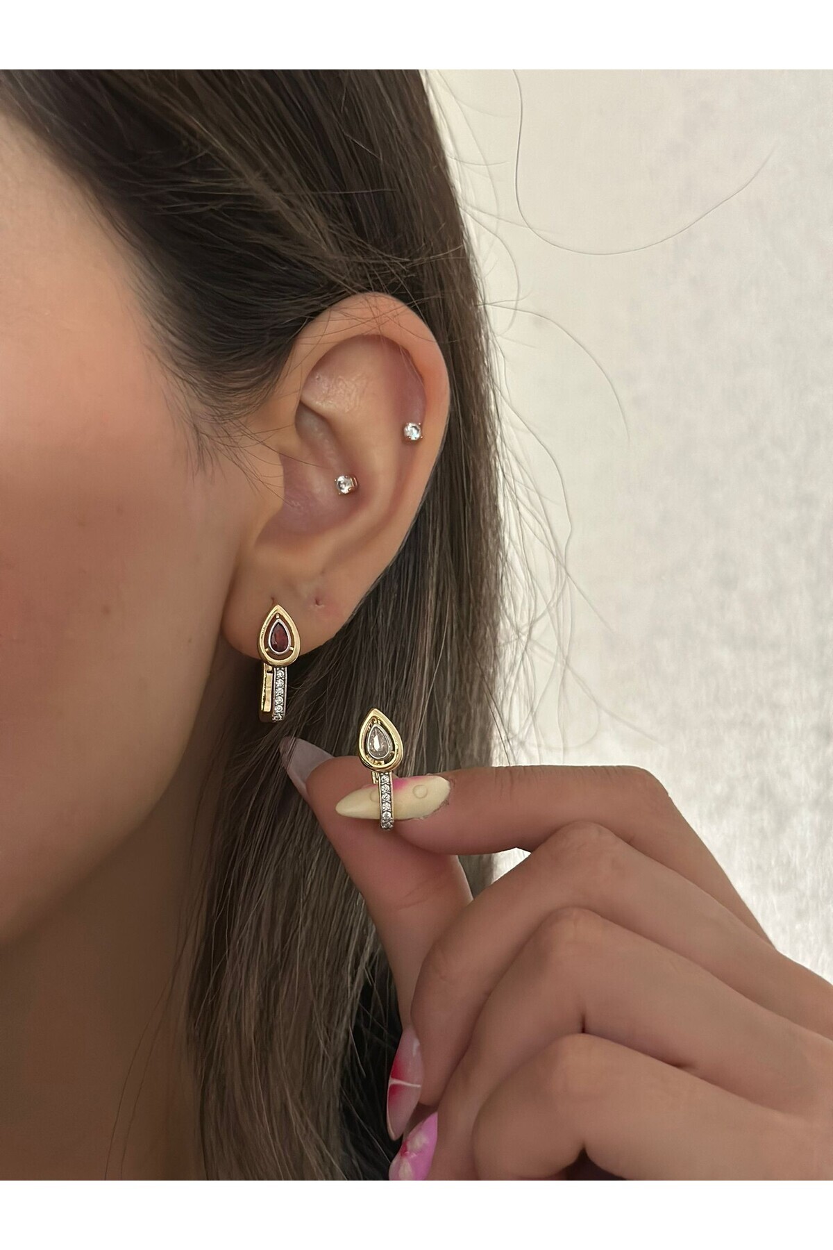 Zirkon Taş Detaylı Damla Halka Küpe Zirkon Taş Detaylı Damla Halka Küpe Myl0000012925 تک سایز
