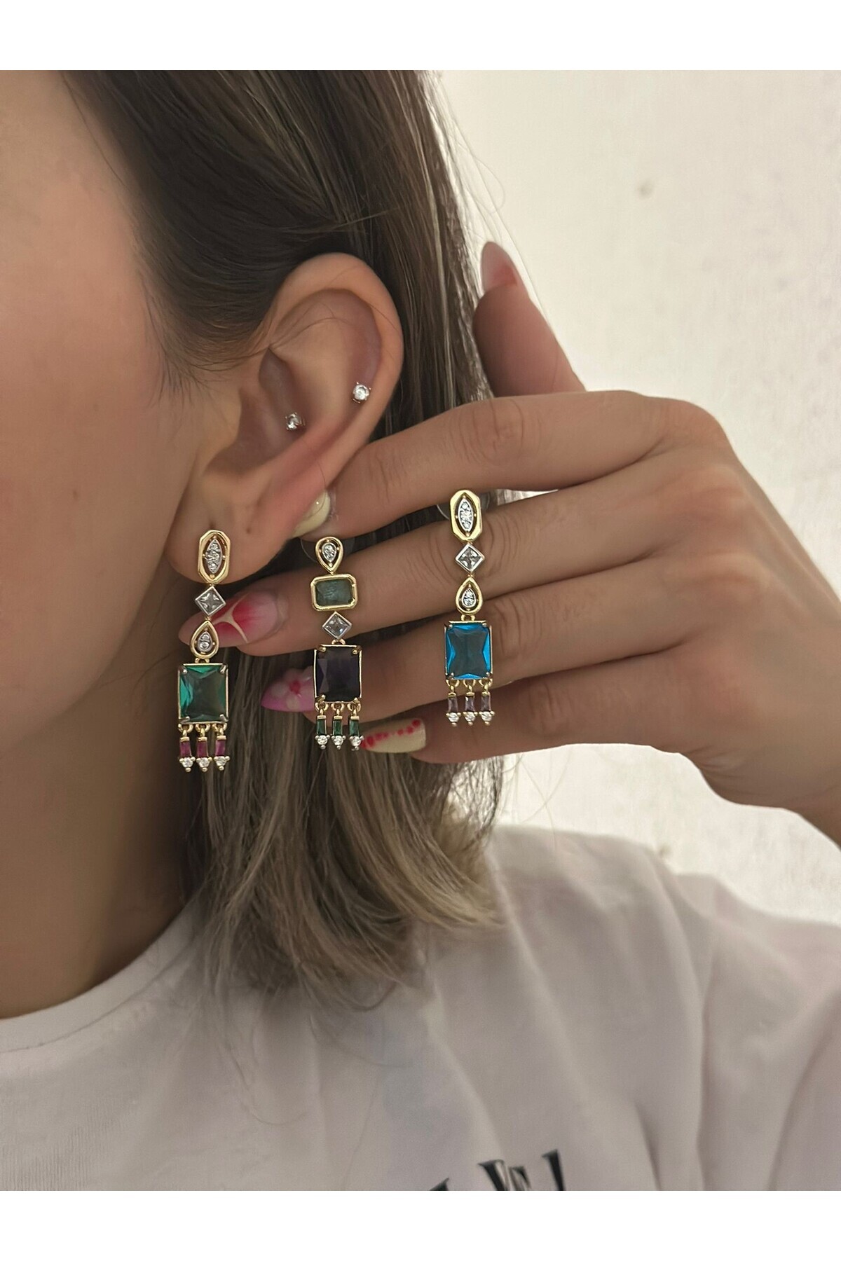 Yıldız Zirkon Taş Detay Kare Kesim Halka Küpe Yıldız Zirkon Taş Detay Kare Kesim Halka Küpe Myl0000012927 تک سایز