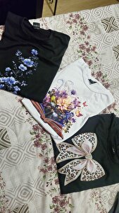 Çiçekli Kitap Baskılı Pamuk Penye Beyaz Tişört Çiçekli Kitap Baskılı Pamuk Penye Beyaz Tişört Ç.K100009 2XL