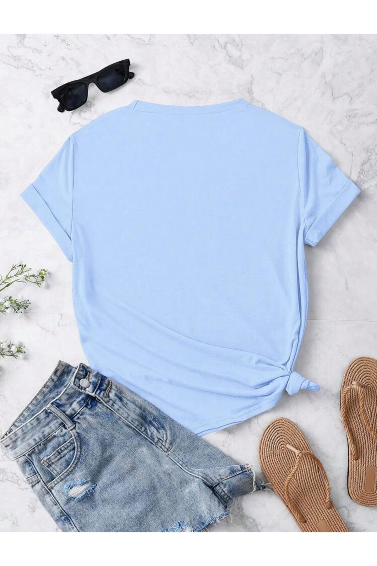 Leopar Desenli Ve Pembe Kurdele Baskılı Pamuk Penye Mavi Tişört Leopar Desenli Ve Pembe Kurdele Baskılı Pamuk Penye Mavi Tişört Ç.K100005 2XL