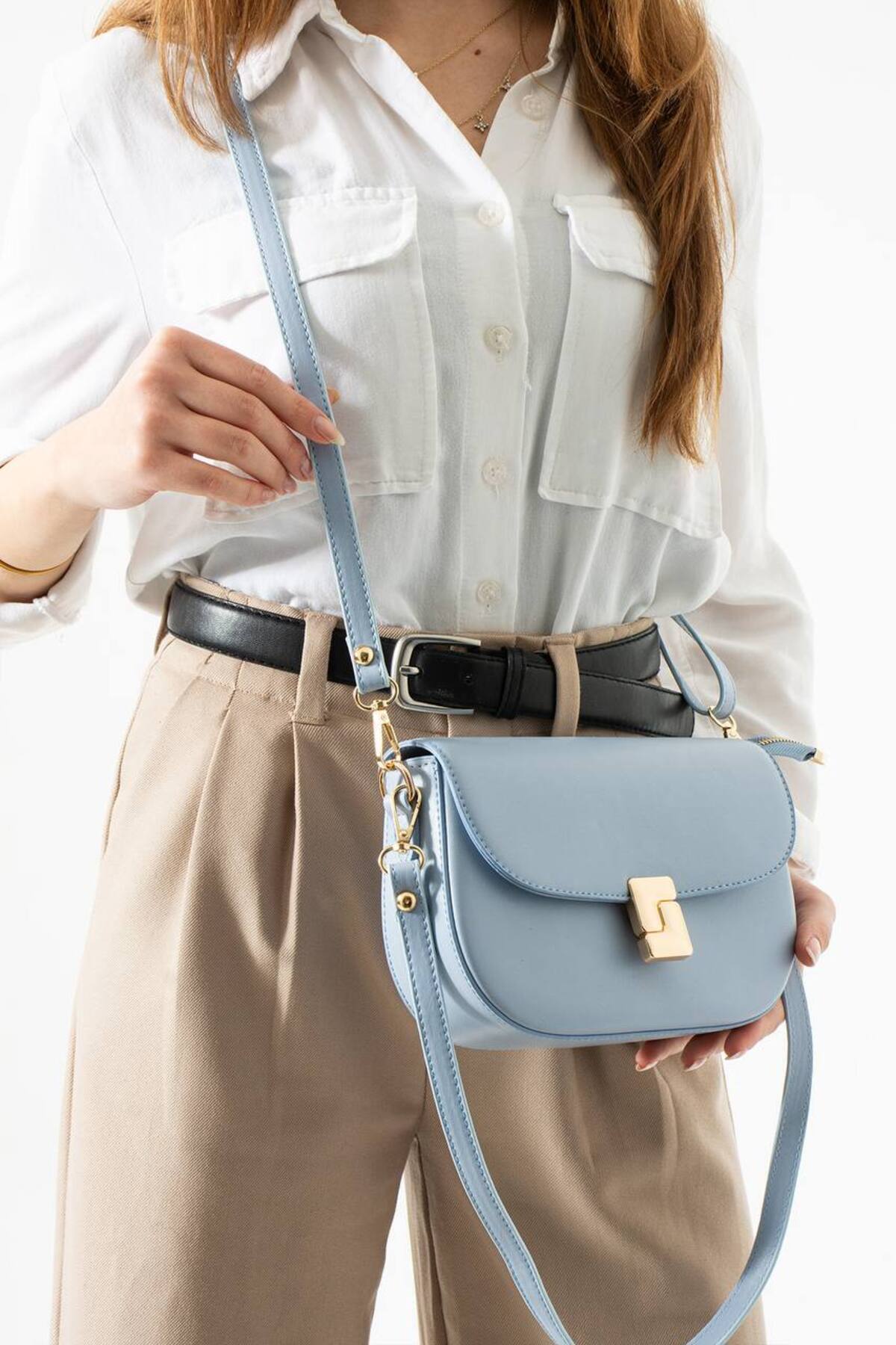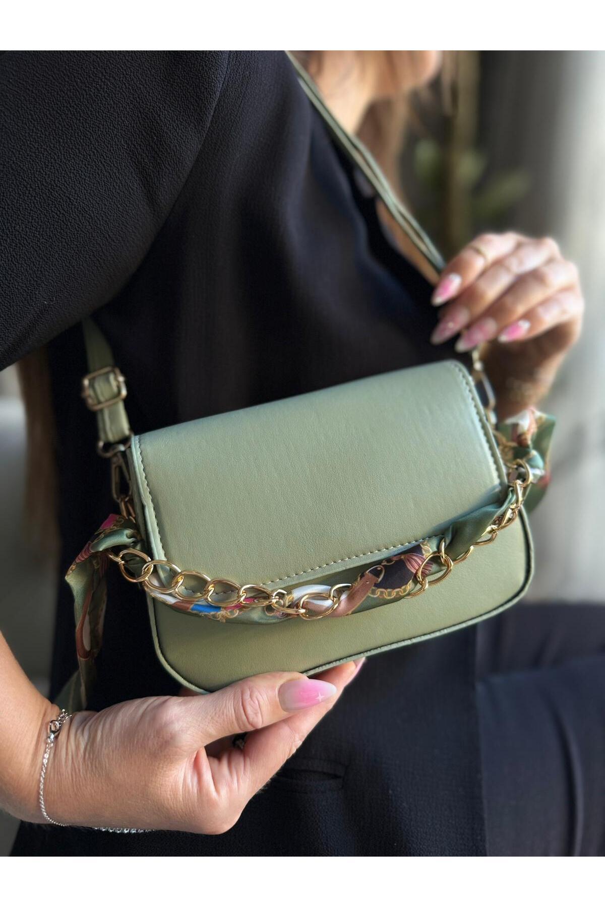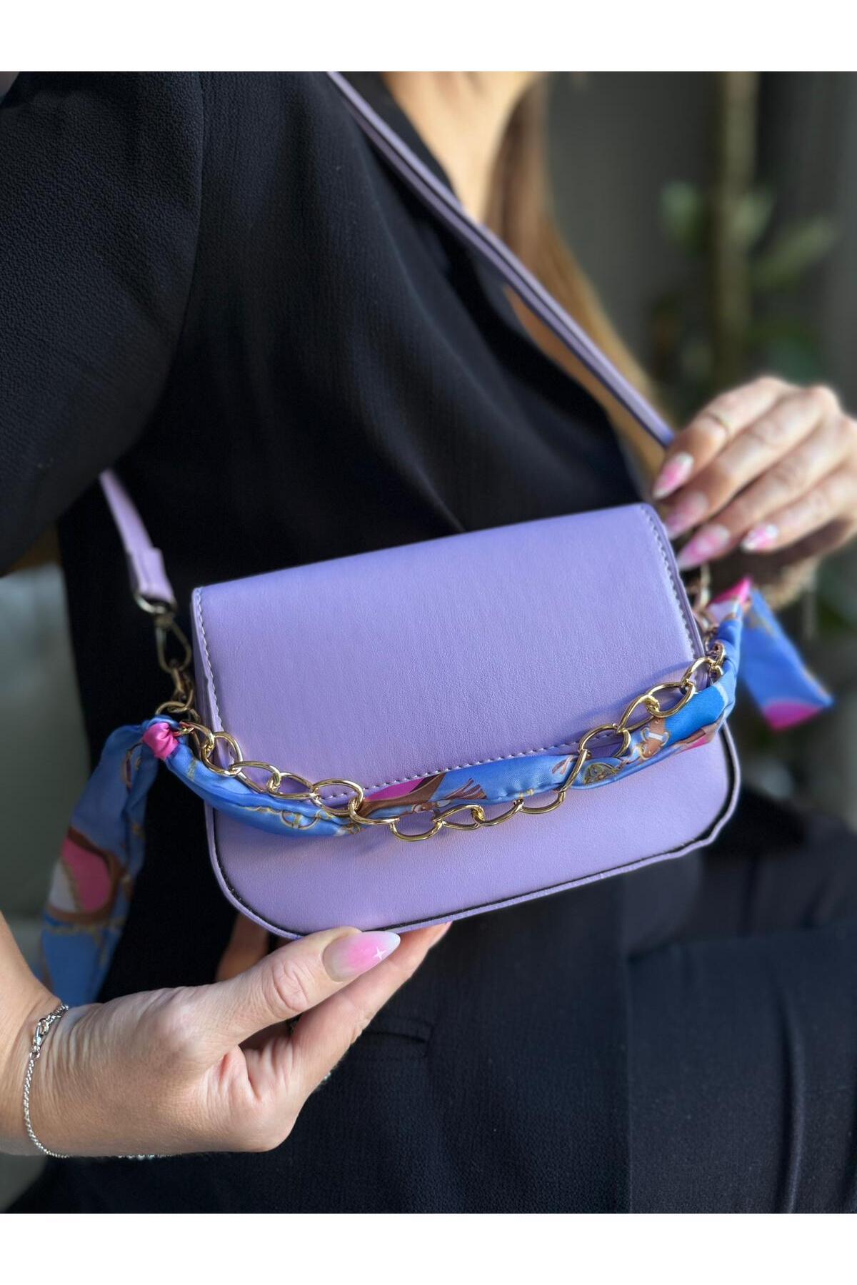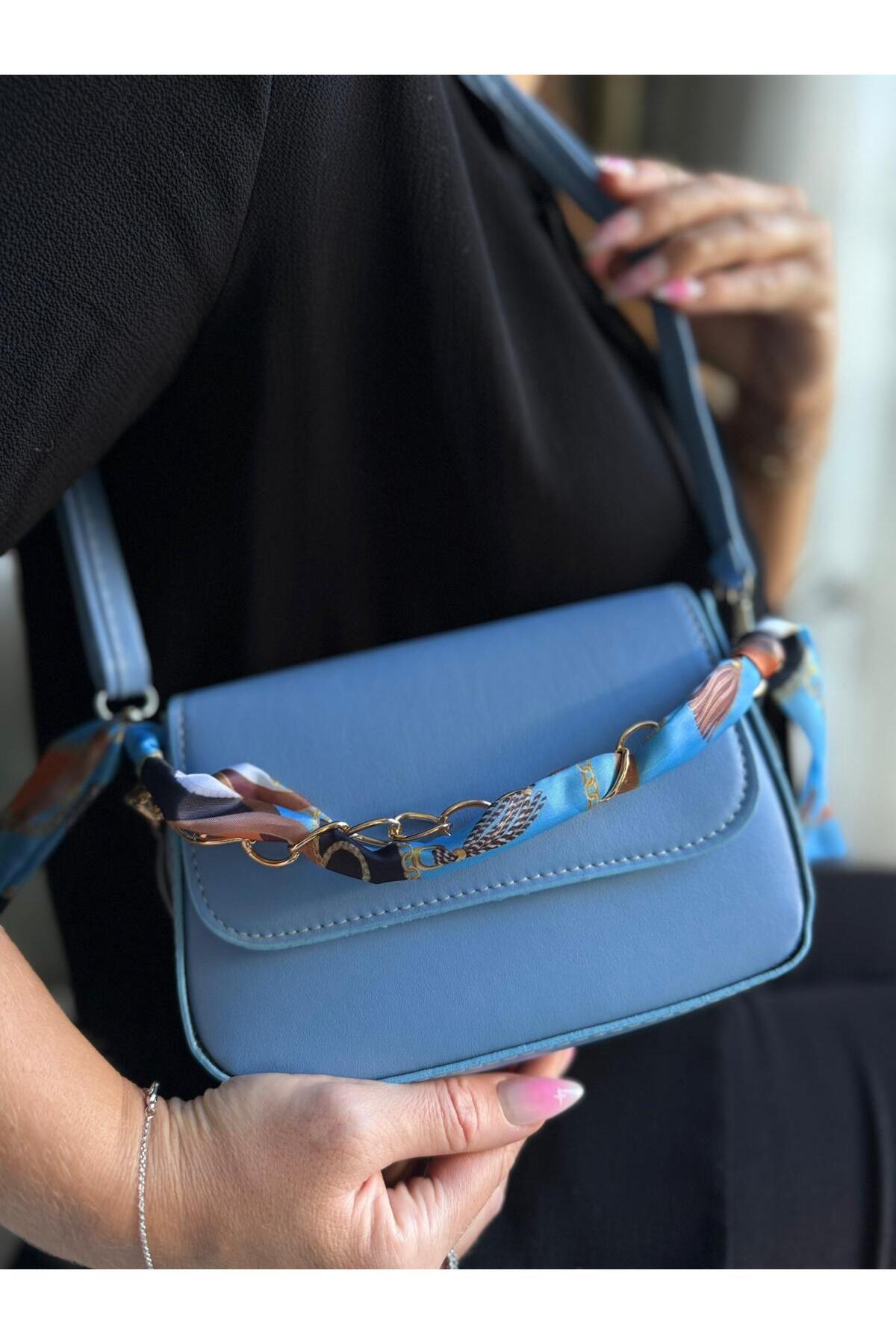 Kadın Mavi Zincir Detaylı Renkli Fular Askılı Omuz Çantası Kadın Mavi Zincir Detaylı Renkli Fular Askılı Omuz Çantası LB0020 تک سایز