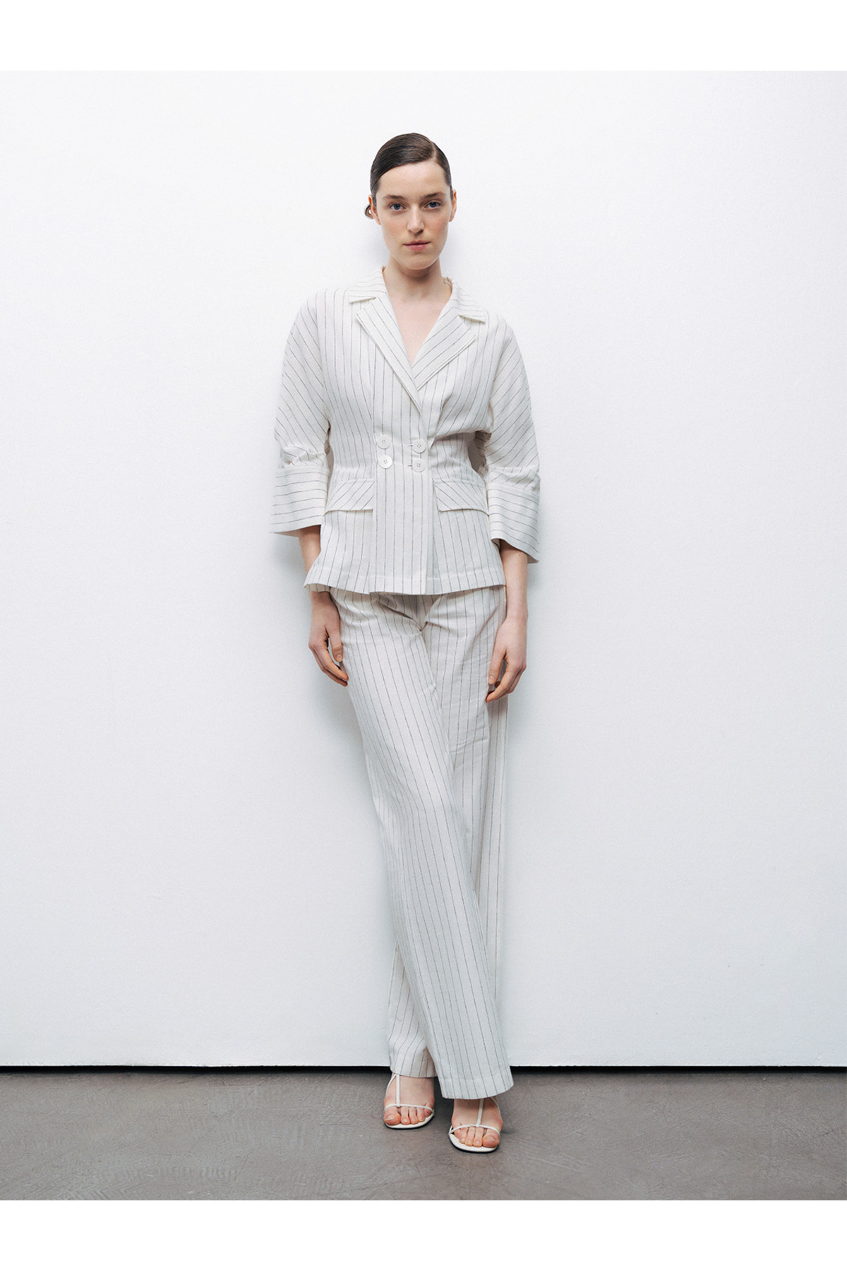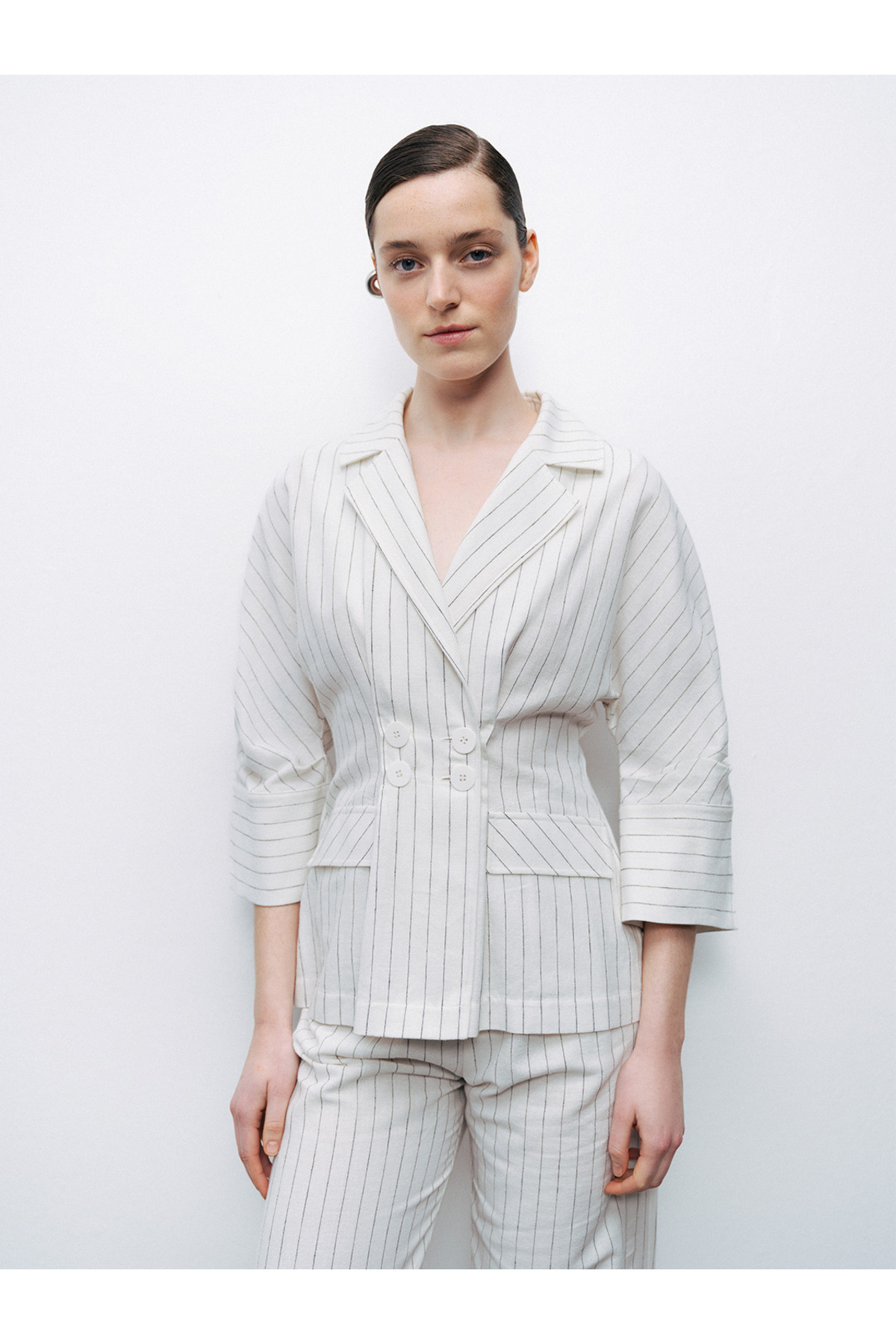 Çizgili Keten Ceket Çizgili Keten Ceket N25YN5280 XL