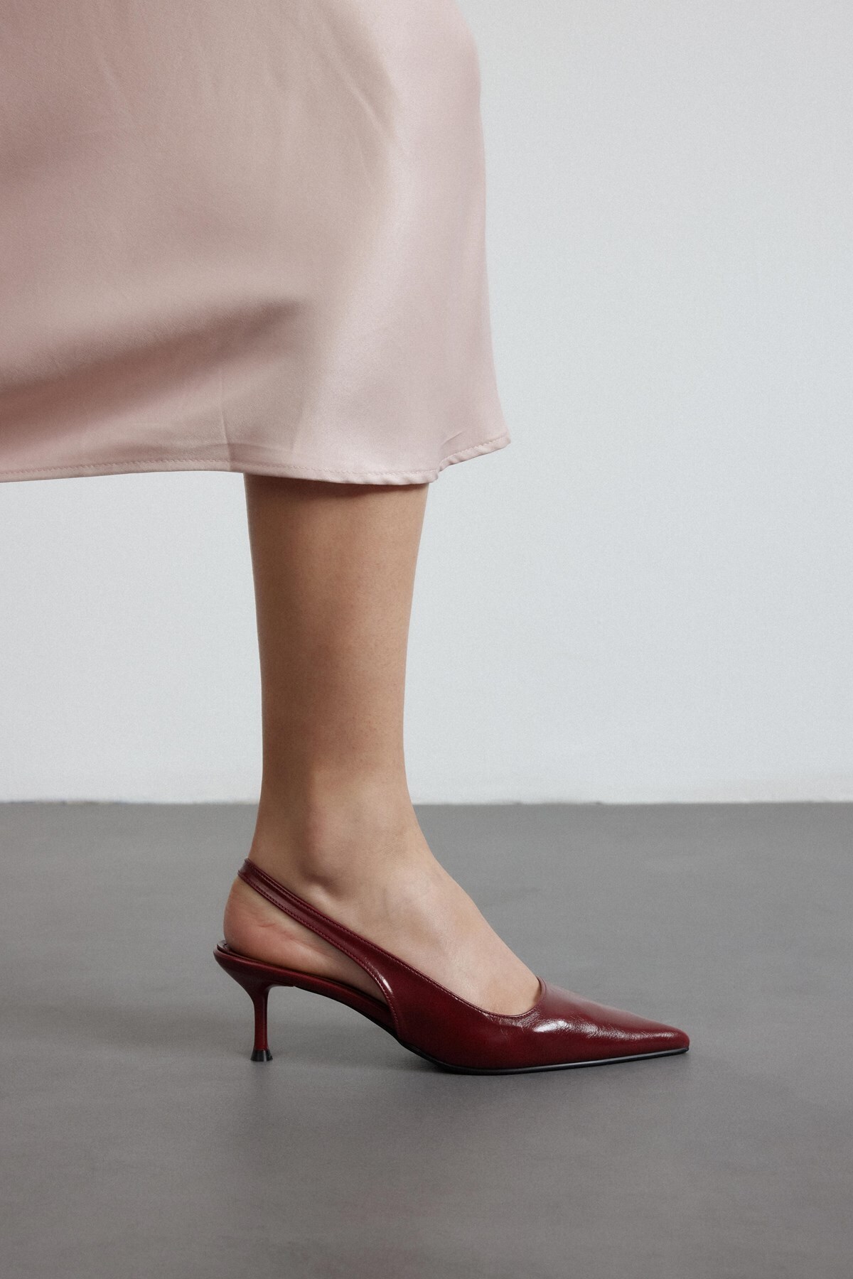 Bordo Cilt Lastik Detaylı Kadın Topuklu Ayakkabı Bordo Cilt Lastik Detaylı Kadın Topuklu Ayakkabı P-057-09-C-D 40
