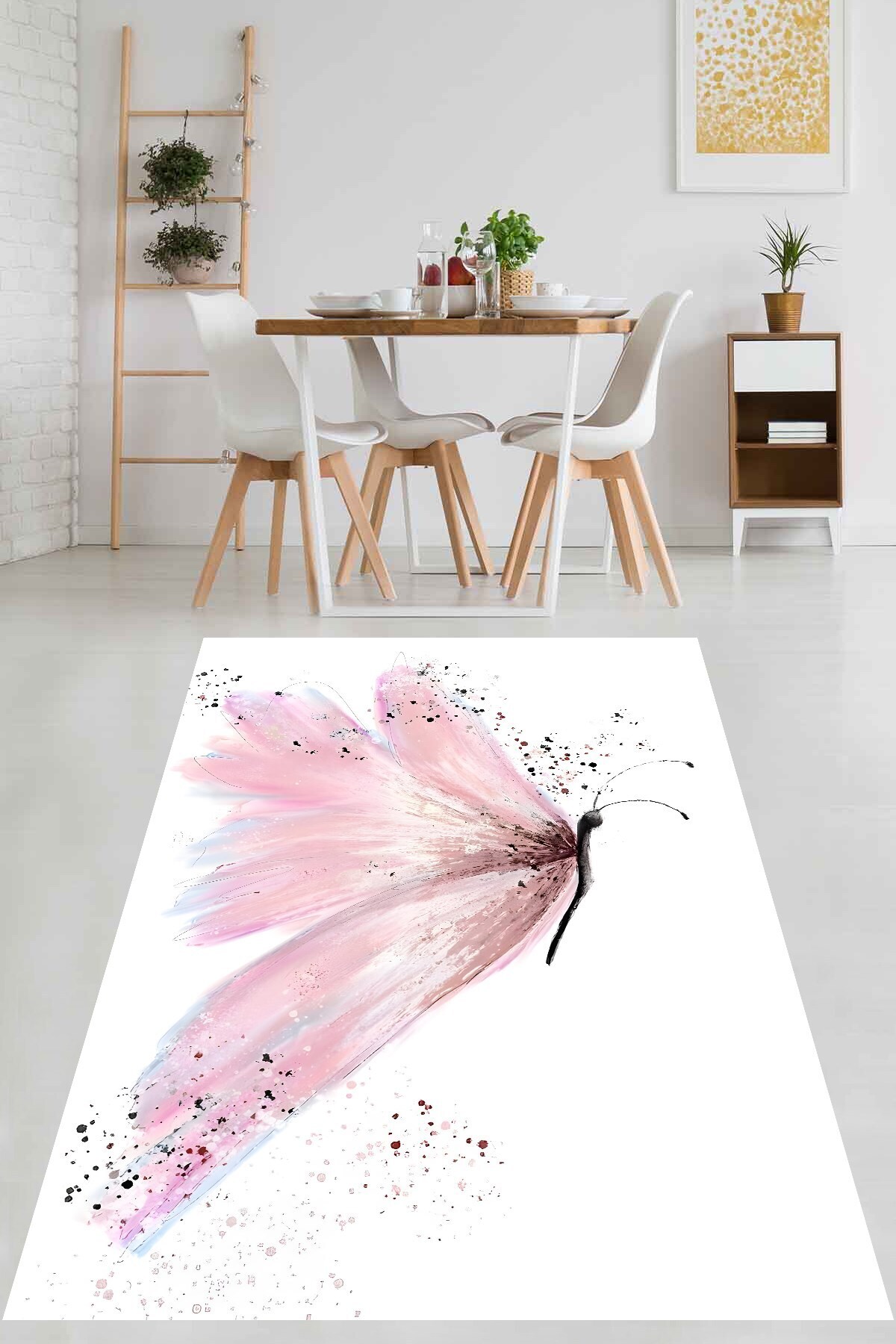 Beyaz Zemin Pembe Kelebek Desenli Yıkanabilir Kaymaz Taban Leke Tutmaz Salon Halısı Yolluk Beyaz Zemin Pembe Kelebek Desenli Yıkanabilir Kaymaz Taban Leke Tutmaz Salon Halısı Yolluk PNHS27 160 x 230