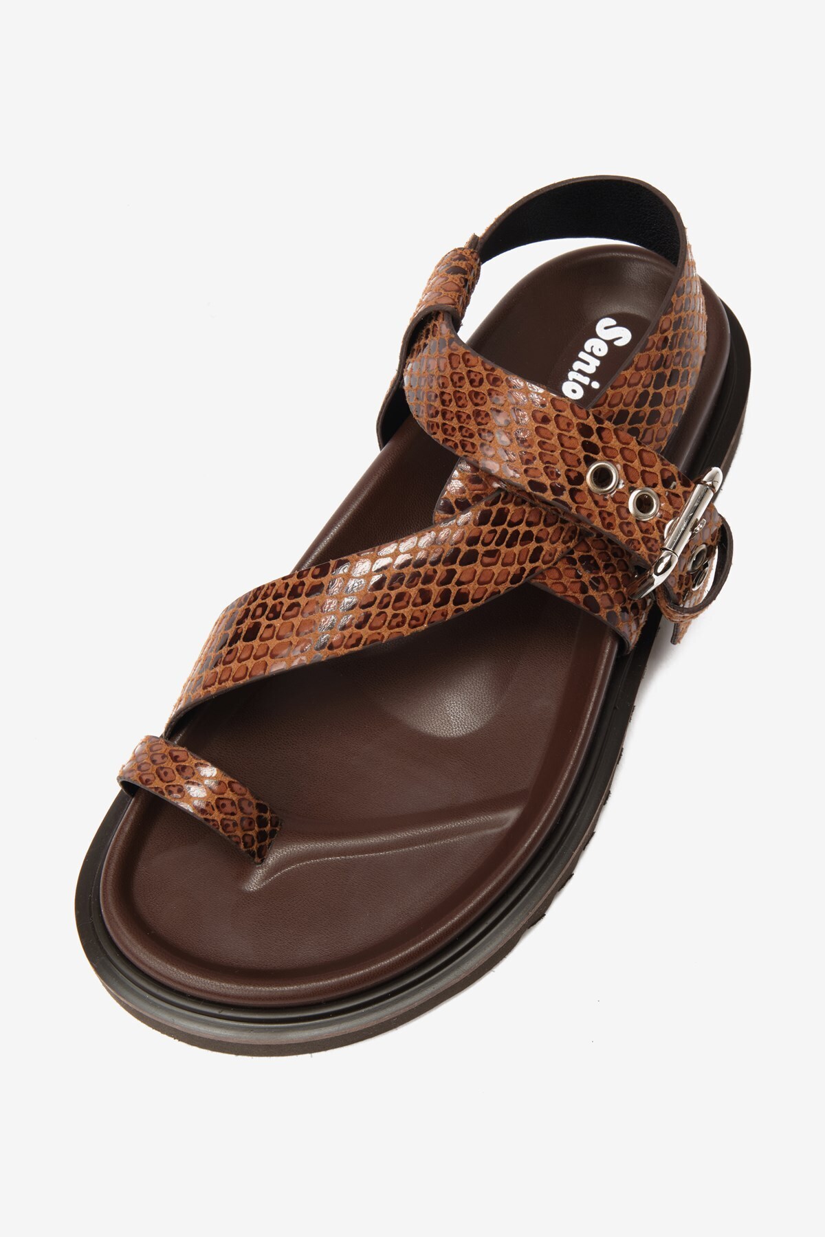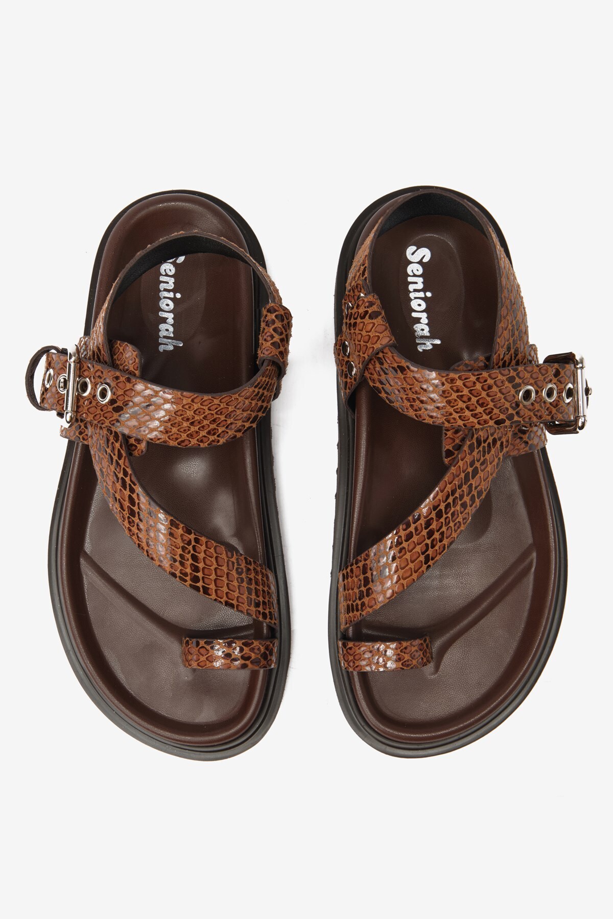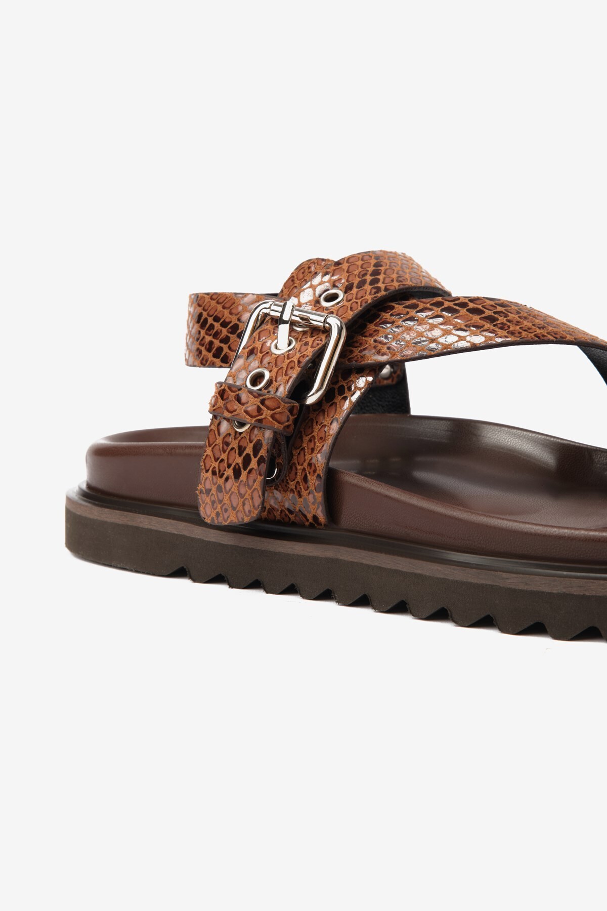 Kahverengi Cilt Yılan Desenli Parmak Arası Kadın Sandalet Kahverengi Cilt Yılan Desenli Parmak Arası Kadın Sandalet P-065-25018-C 40