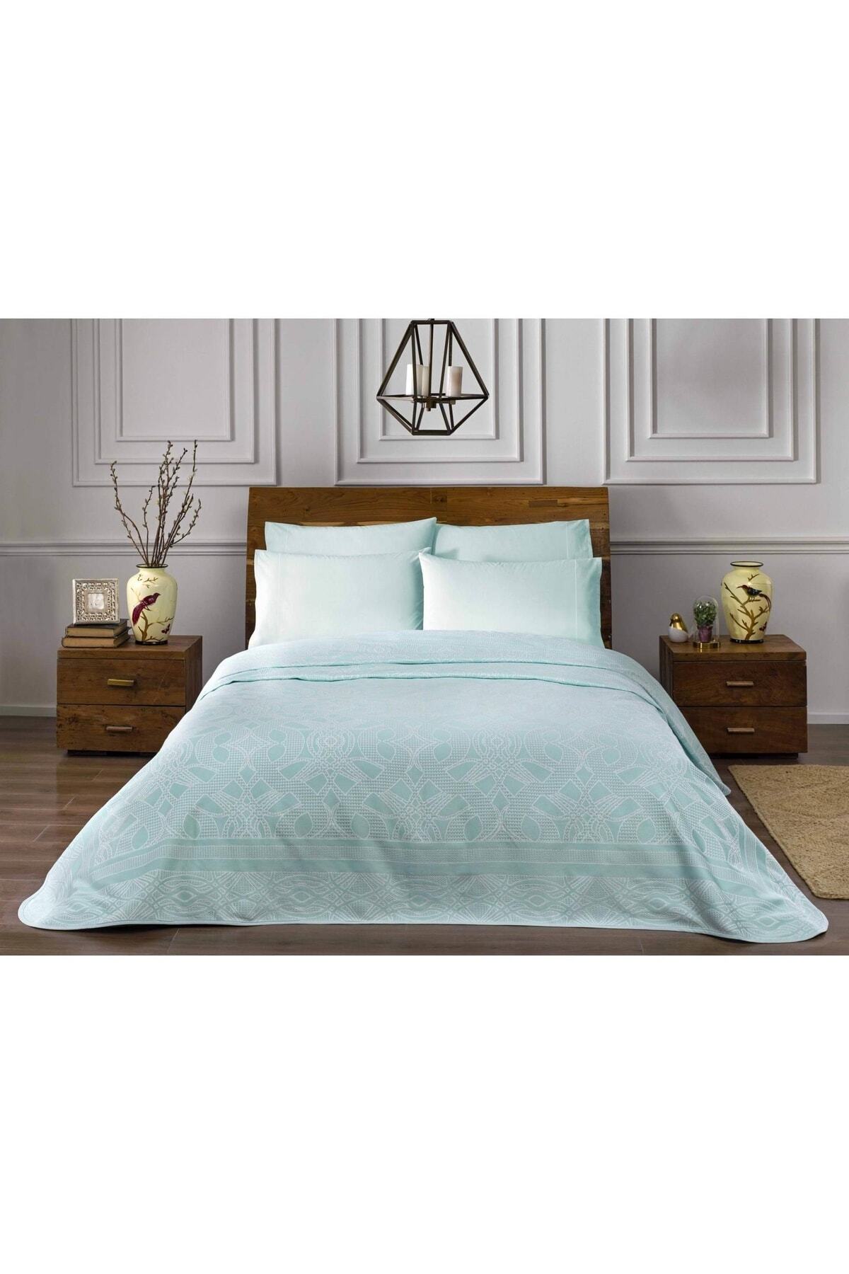 Serafina Turkuaz Jakar Pike Takımı Yatak Örtüsü Serafina Turkuaz Jakar Pike Takımı Yatak Örtüsü 8682475038164 تک سایز