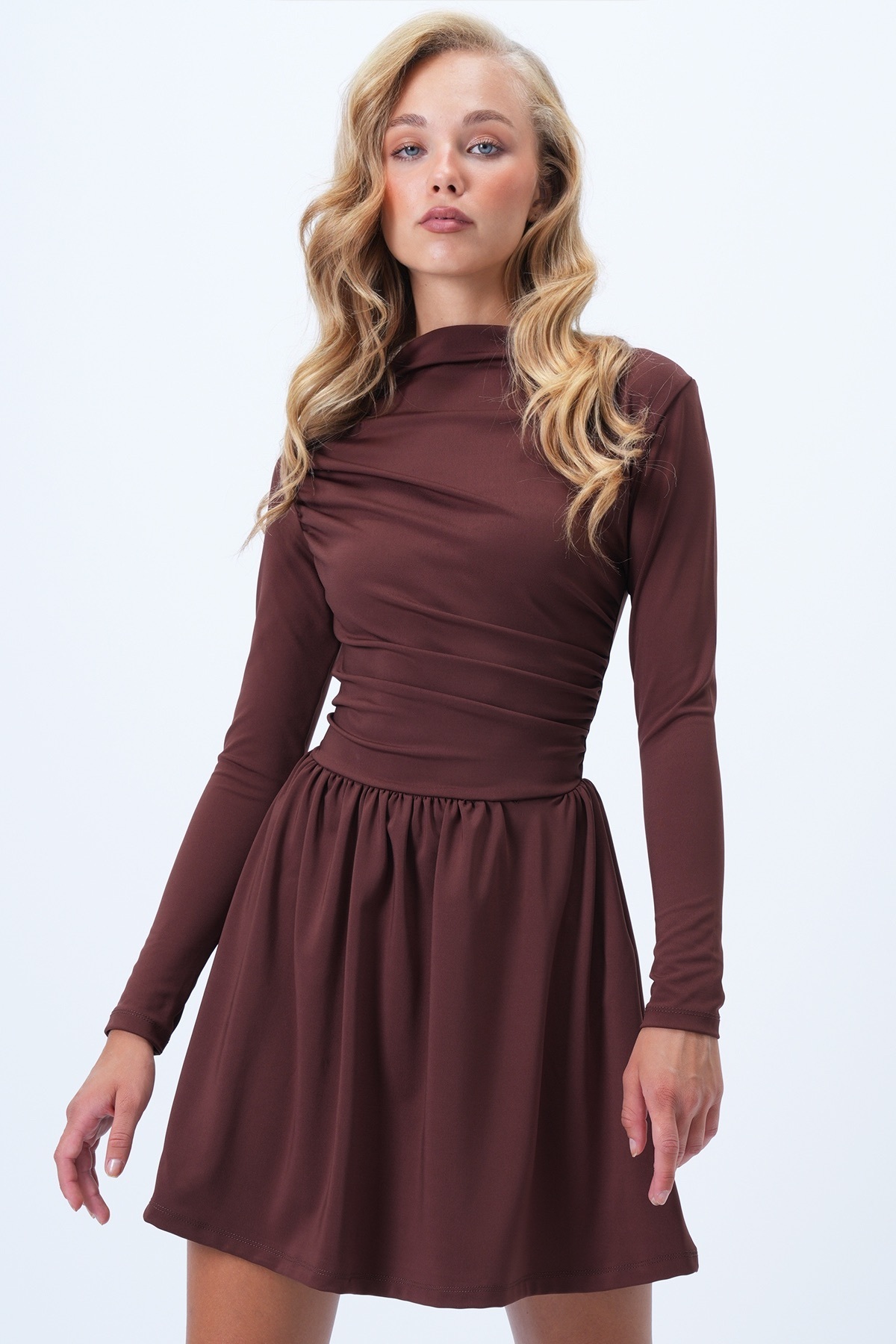 Pembe V Yaka Balon Kollu Elbise Pembe V Yaka Balon Kollu Elbise 8963553263855 40