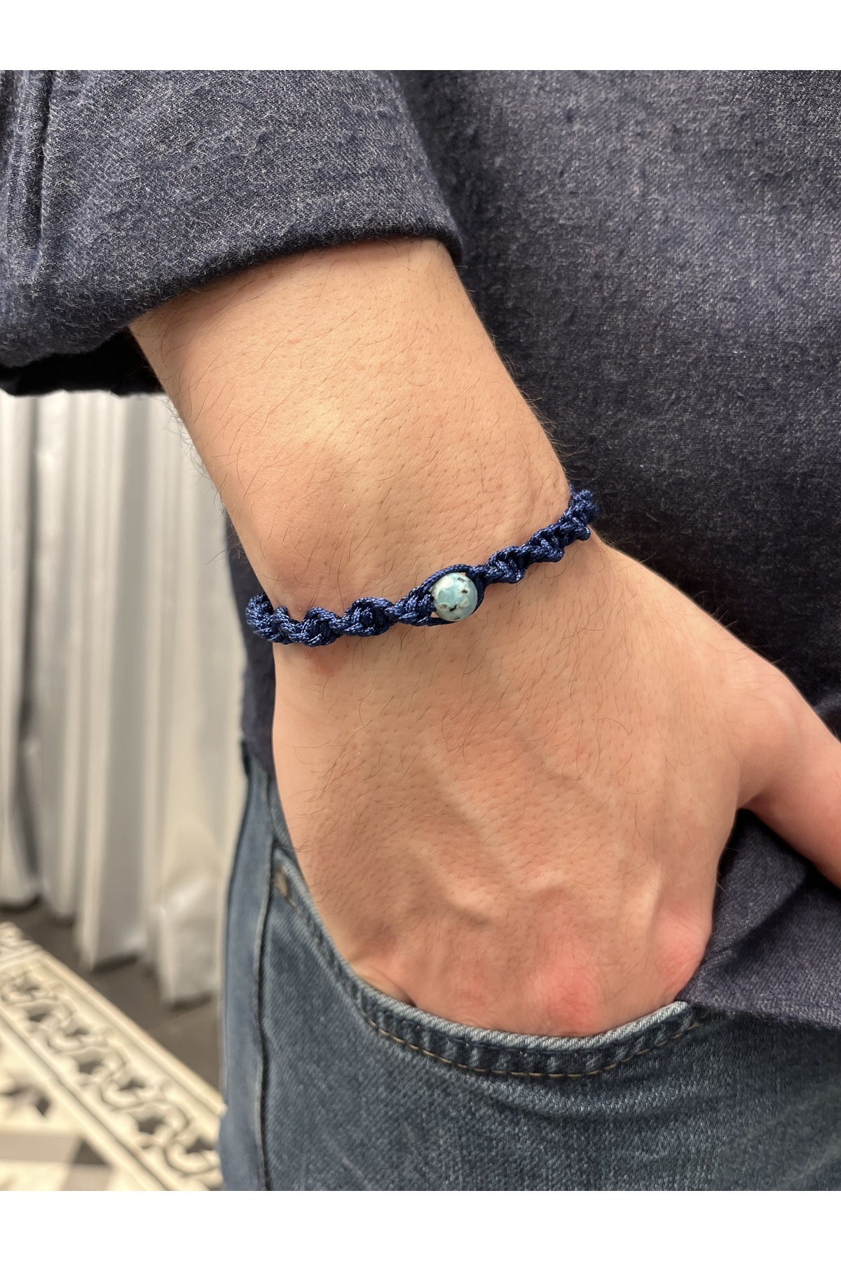 Çelik Zincirli Su Yeşili Ipli, Ayarlanabir Unisex Bileklik Çelik Zincirli Su Yeşili Ipli, Ayarlanabir Unisex Bileklik ku97yuadj XL