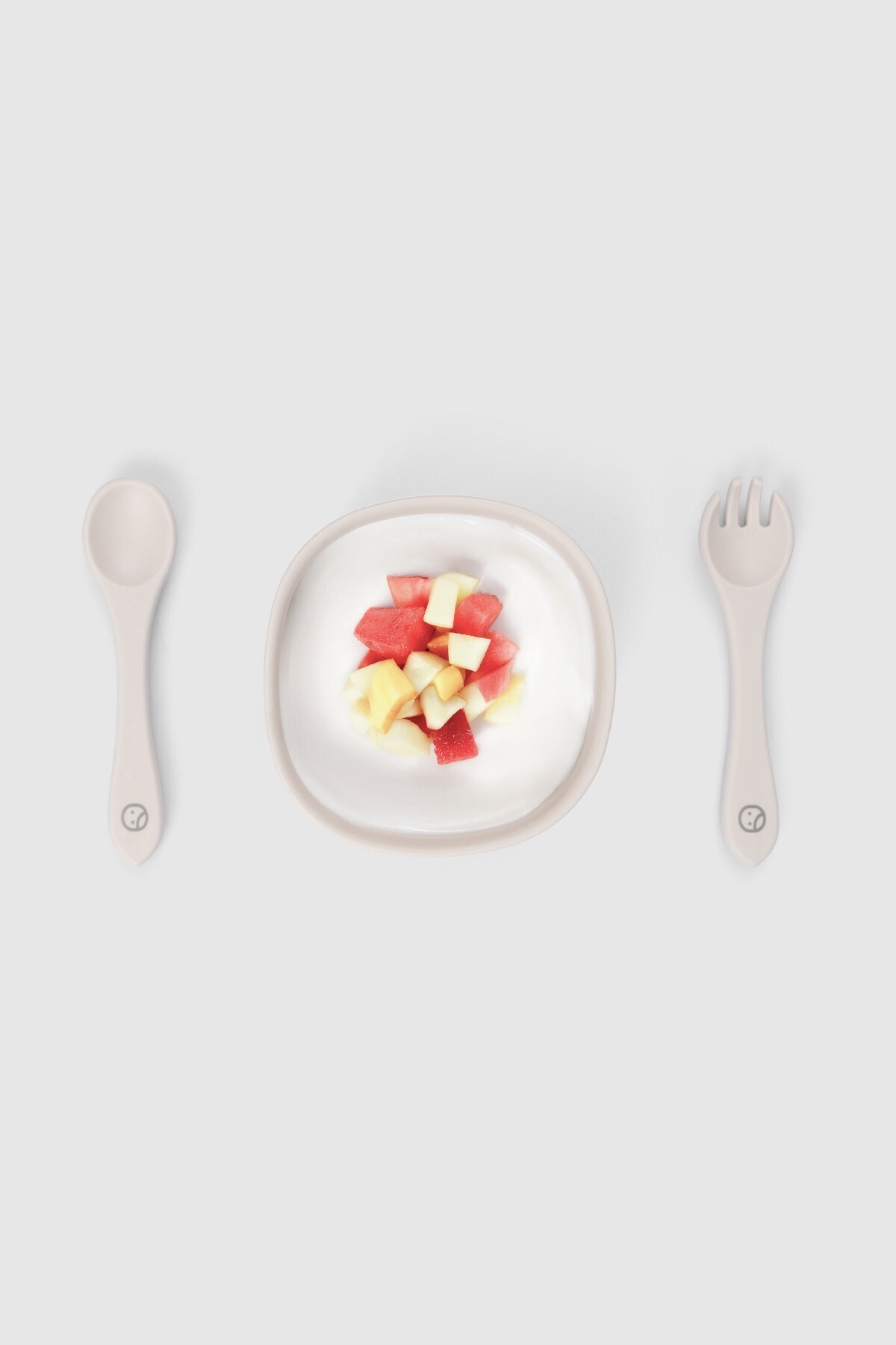 Silikon Vakumlu Bej Mama Tabağı ve Çatal Kaşık Seti Silikon Vakumlu Bej Mama Tabağı ve Çatal Kaşık Seti LGJULY01 تک سایز