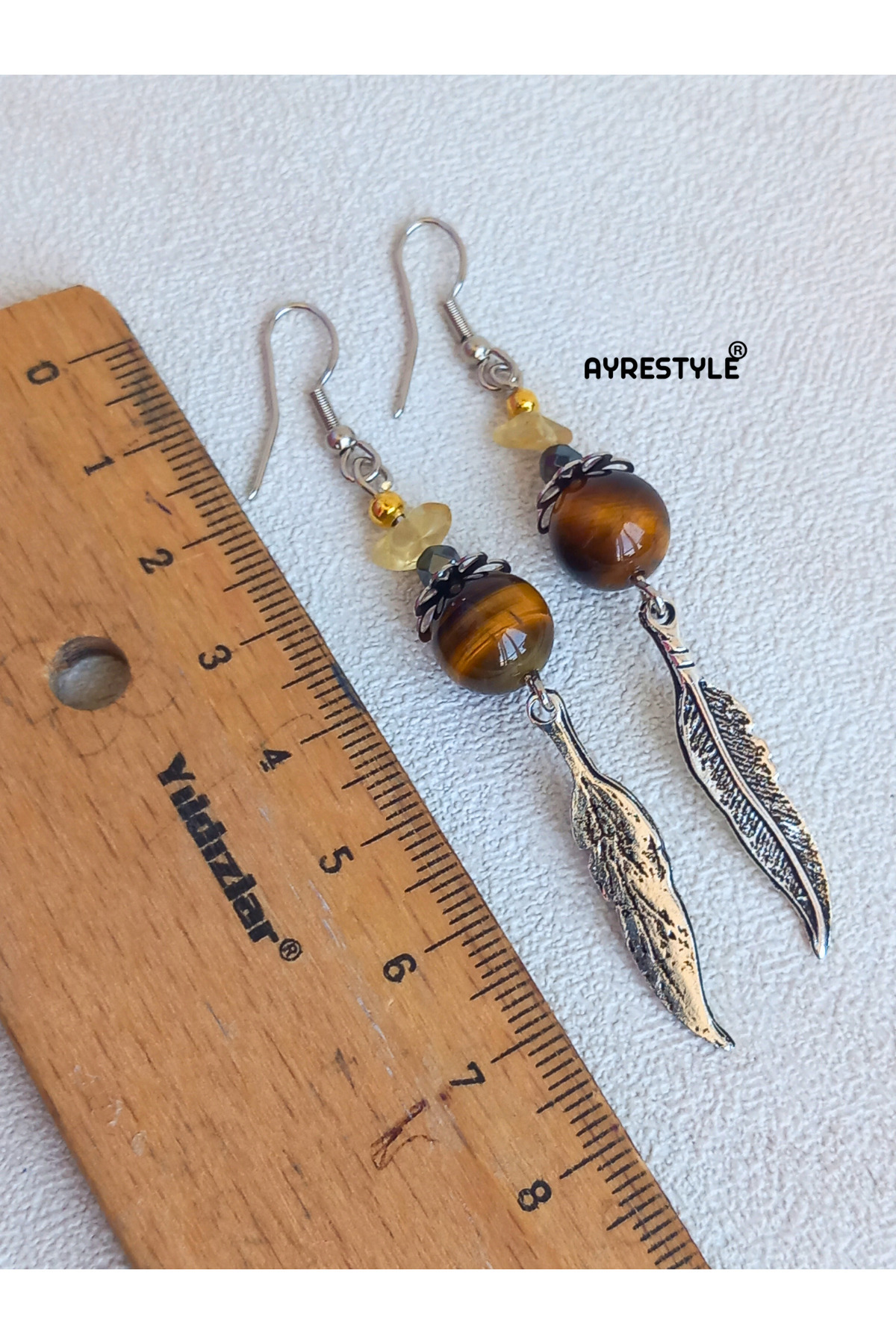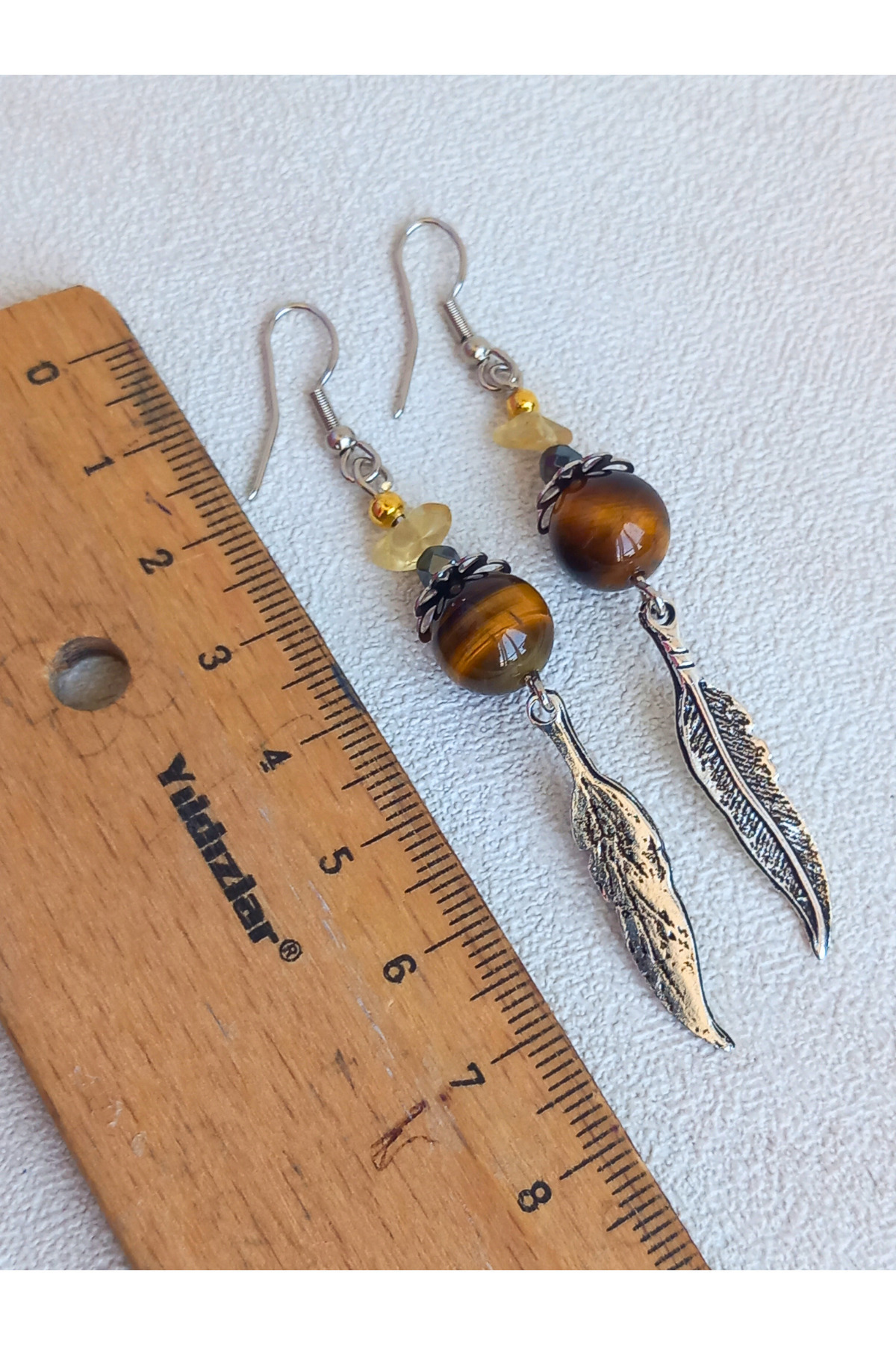 Sitrin Hematit Kaplan Gözü Taşlı Kartal Tüyü Detaylı Gümüş Renk Sallantılı Kadın Küpe Sitrin Hematit Kaplan Gözü Taşlı Kartal Tüyü Detaylı Gümüş Renk Sallantılı Kadın Küpe 27052025-24 تک سایز