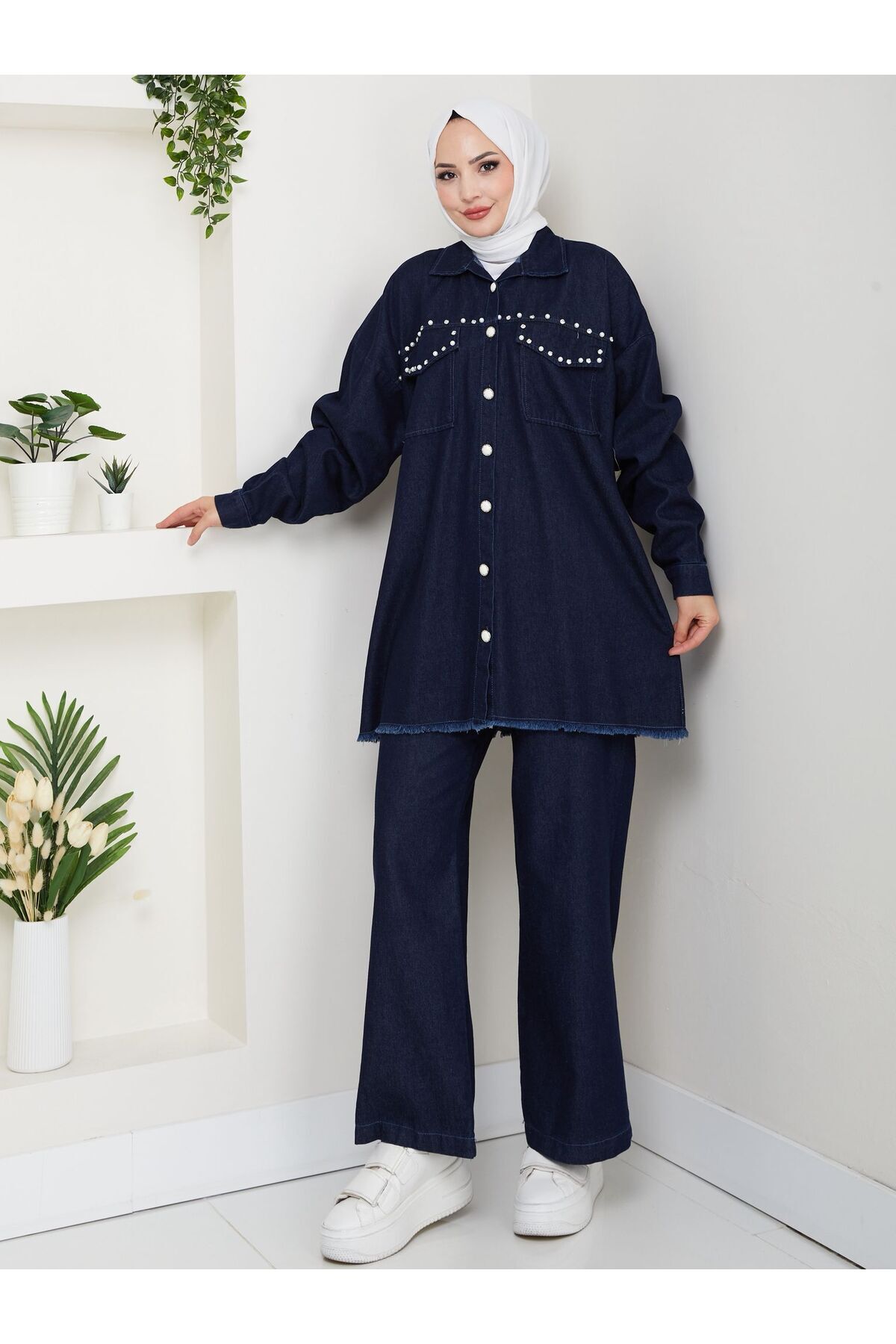 Beli Lastikli Boydan Düğmeli Ceket Pantolon Kot Takım Beli Lastikli Boydan Düğmeli Ceket Pantolon Kot Takım MMG00159 42