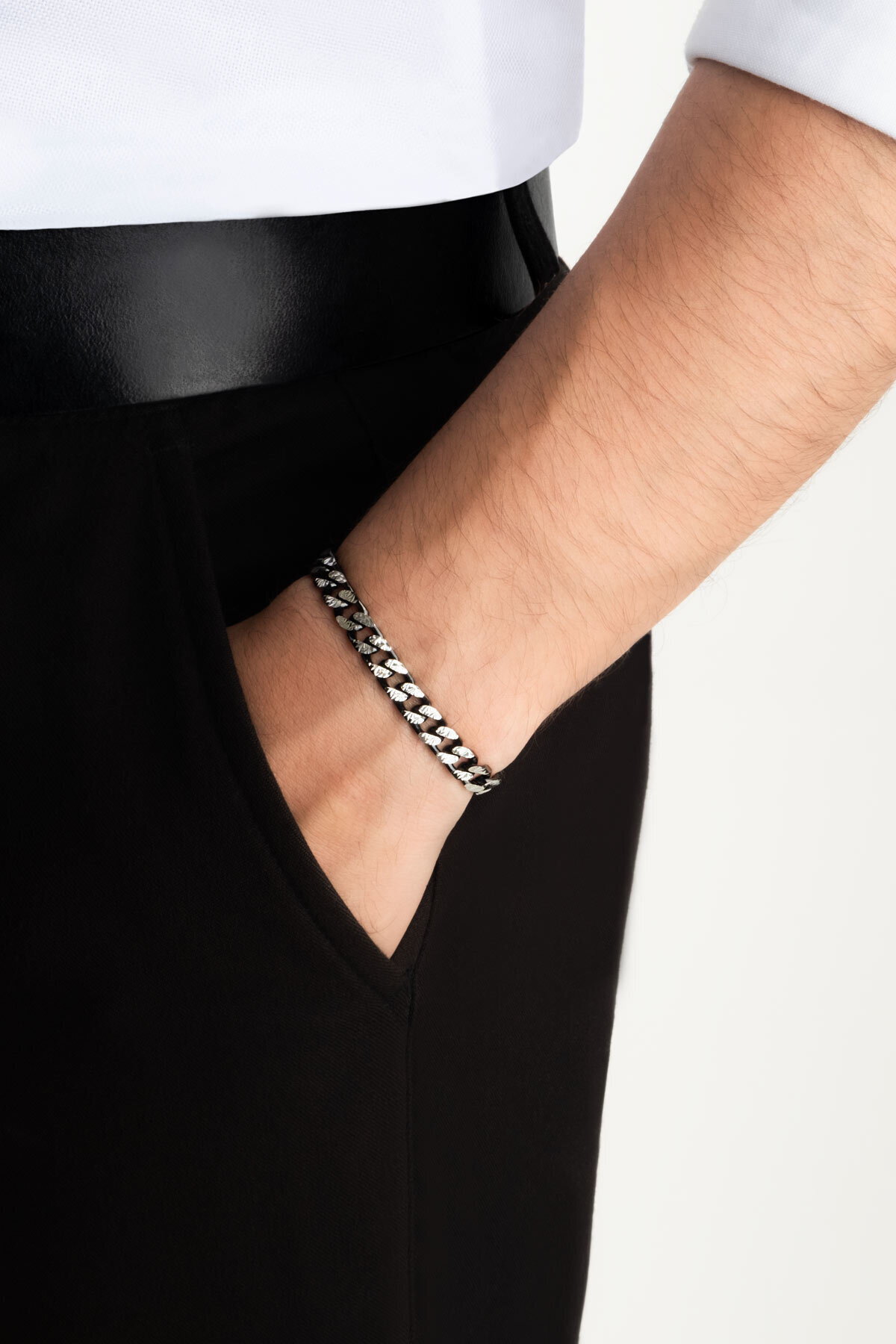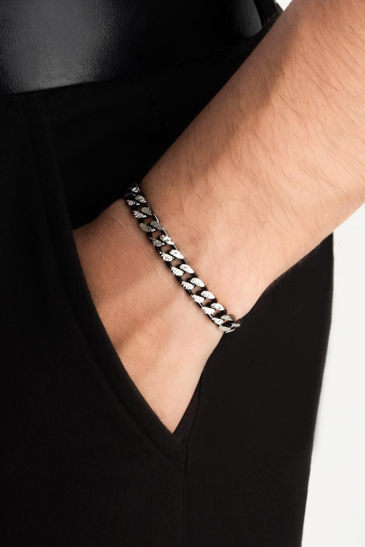 İtalyan Rutenyum Kaplama Gümüş Erkek Zincir Bileklik İtalyan Rutenyum Kaplama Gümüş Erkek Zincir Bileklik 52074199 21 cm