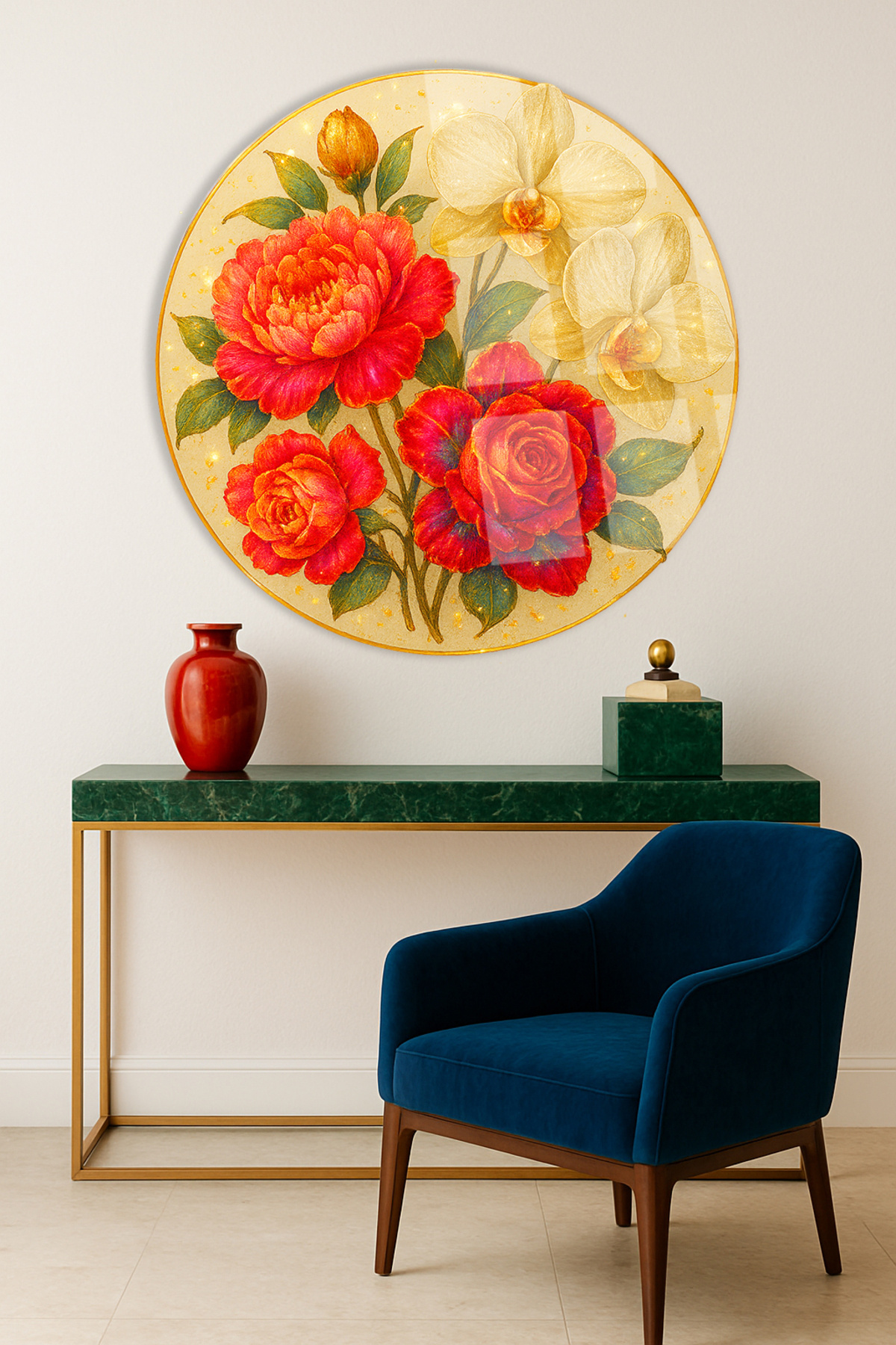 HARİKA IŞILTILI ÇİÇEKLER KIRILMAZ YUVARLAK CAM TABLO LÜKS EV HEDİYESİ ULTRA CANLI RENKLİ HARİKA IŞILTILI ÇİÇEKLER KIRILMAZ YUVARLAK CAM TABLO LÜKS EV HEDİYESİ ULTRA CANLI RENKLİ DBFNRJENV24 50 x 50