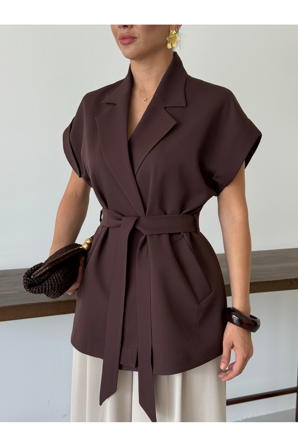 Düşük Kol Oversize Kuşaklı Yelek Düşük Kol Oversize Kuşaklı Yelek yelek2025d XL