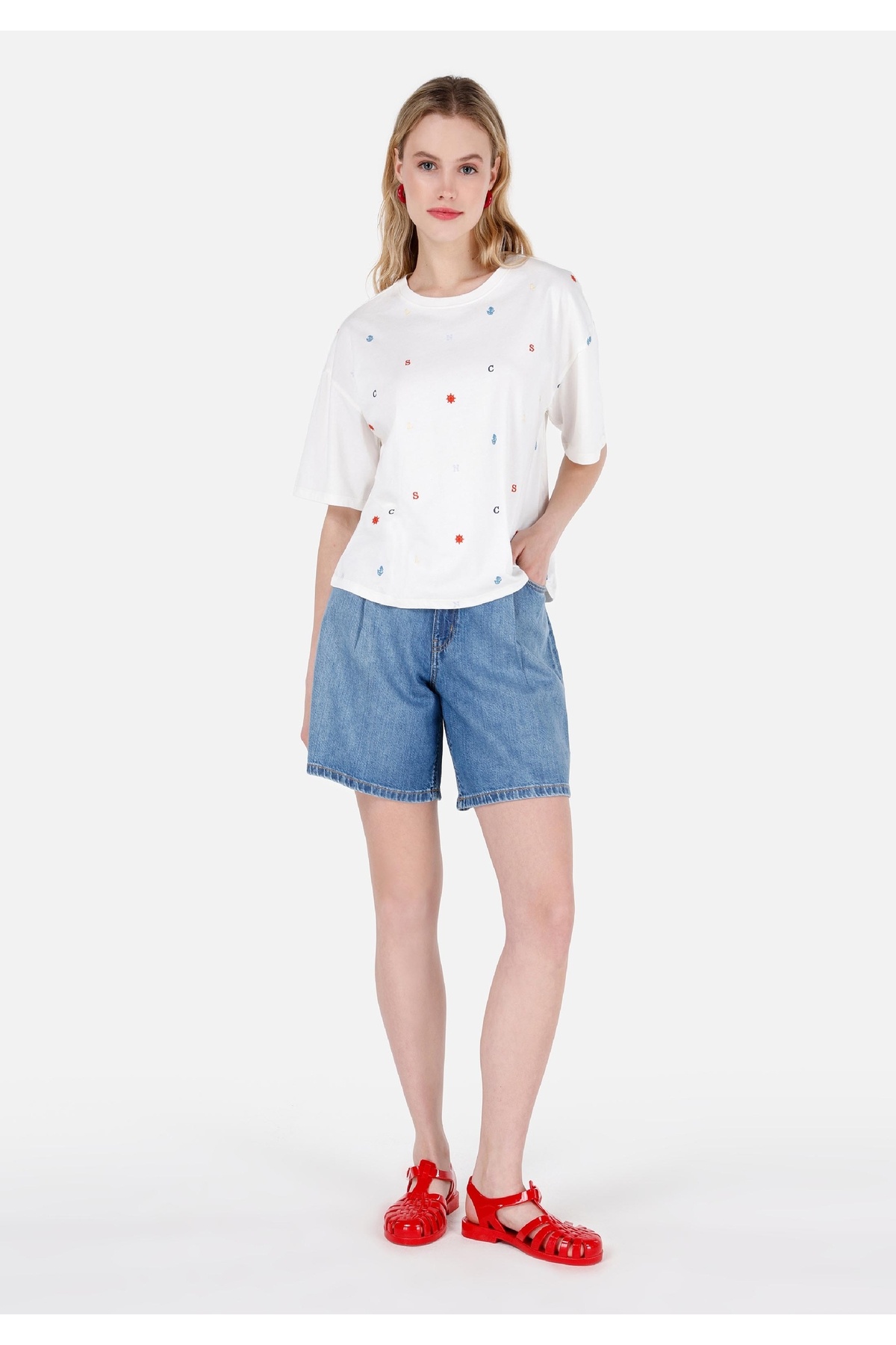 Mom Fit Yüksel Bel Düz Kadın İndigo Jean Şort Mom Fit Yüksel Bel Düz Kadın İndigo Jean Şort CL1073900_Q1.V1 40