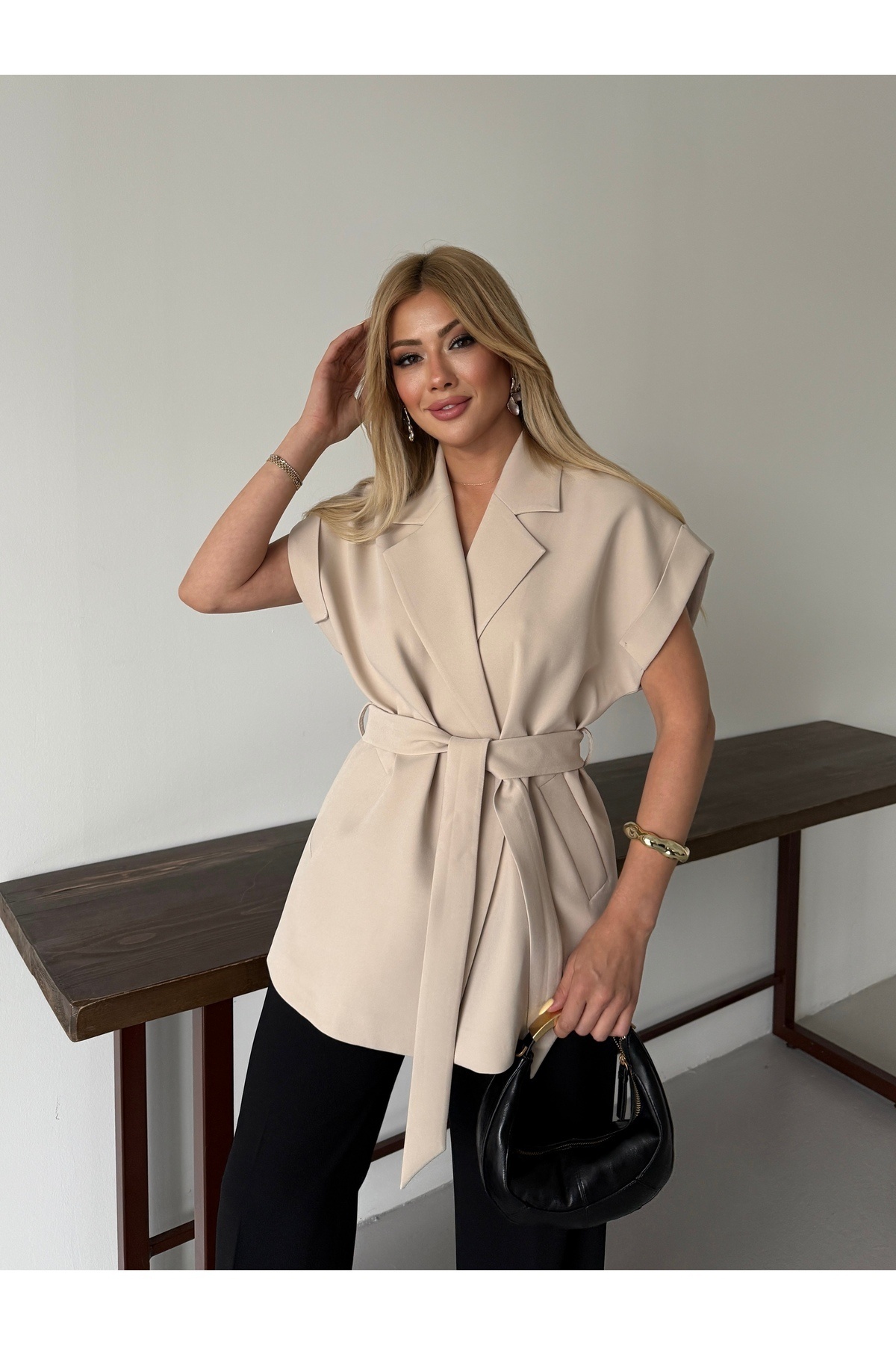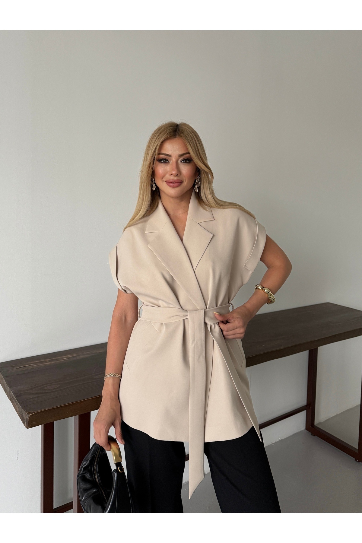 Düşük Kol Oversize Kuşaklı Yelek Düşük Kol Oversize Kuşaklı Yelek yelek2025d XL