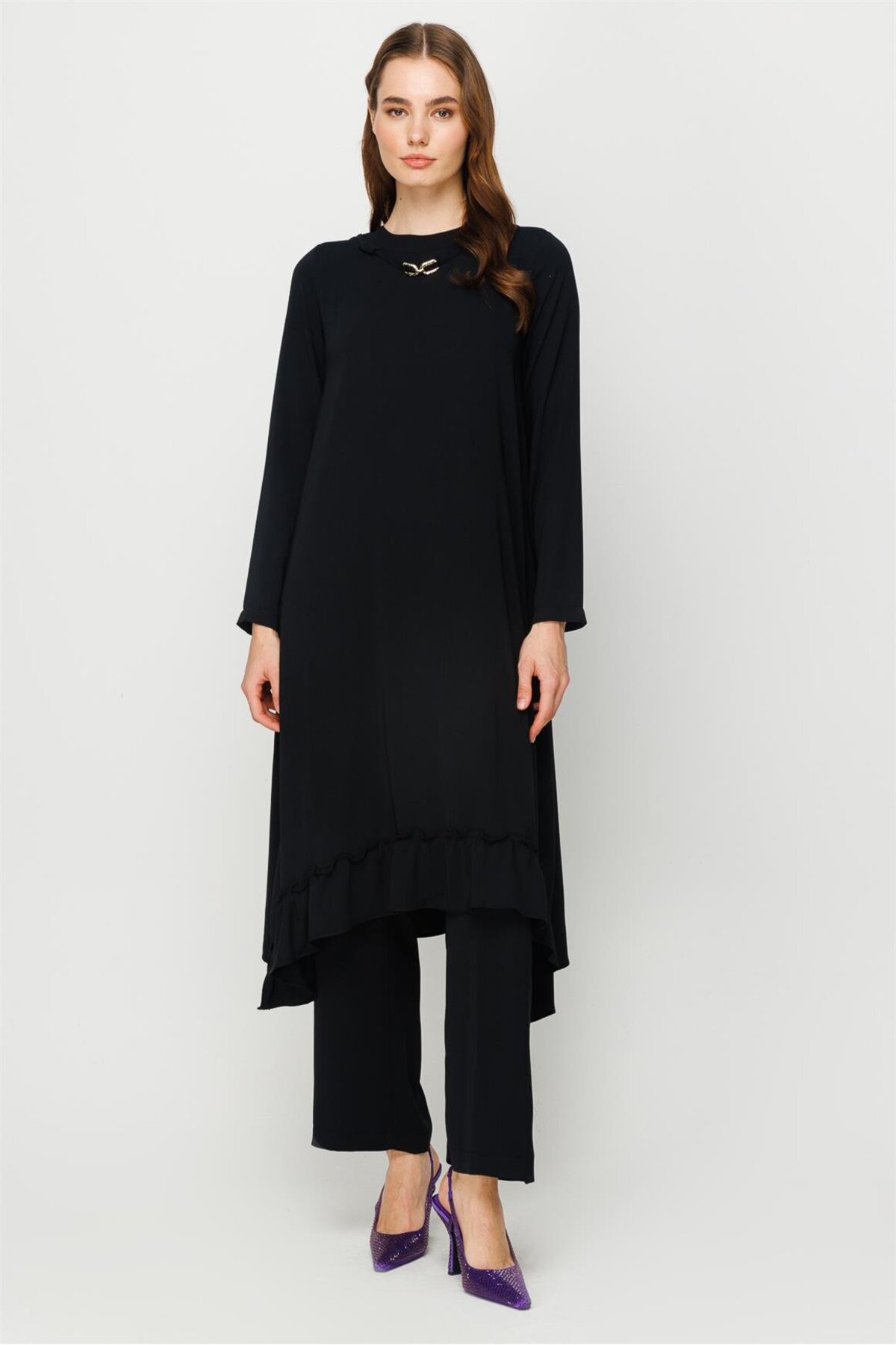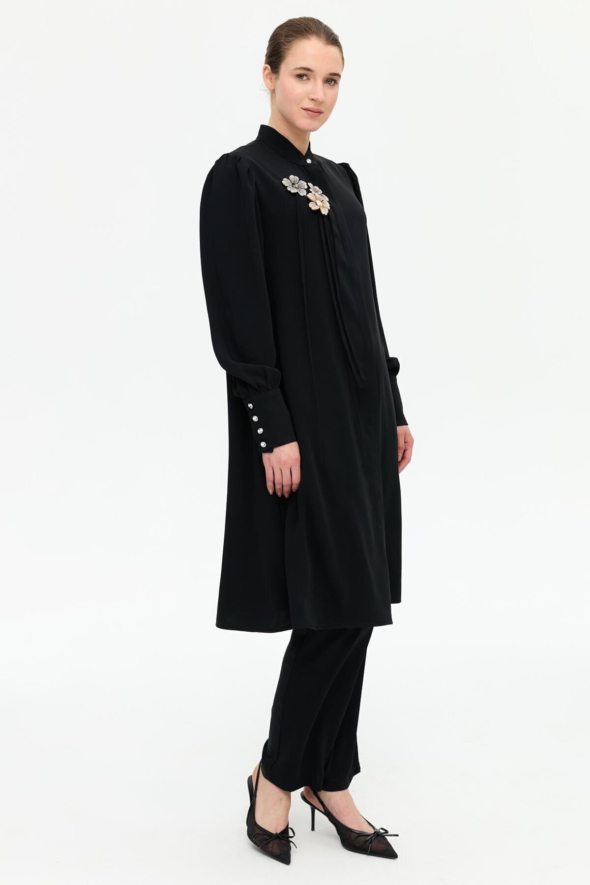 Broş ve Biye Detaylı Pantolonlu Takım Siyah Broş ve Biye Detaylı Pantolonlu Takım Siyah 2517102200 46