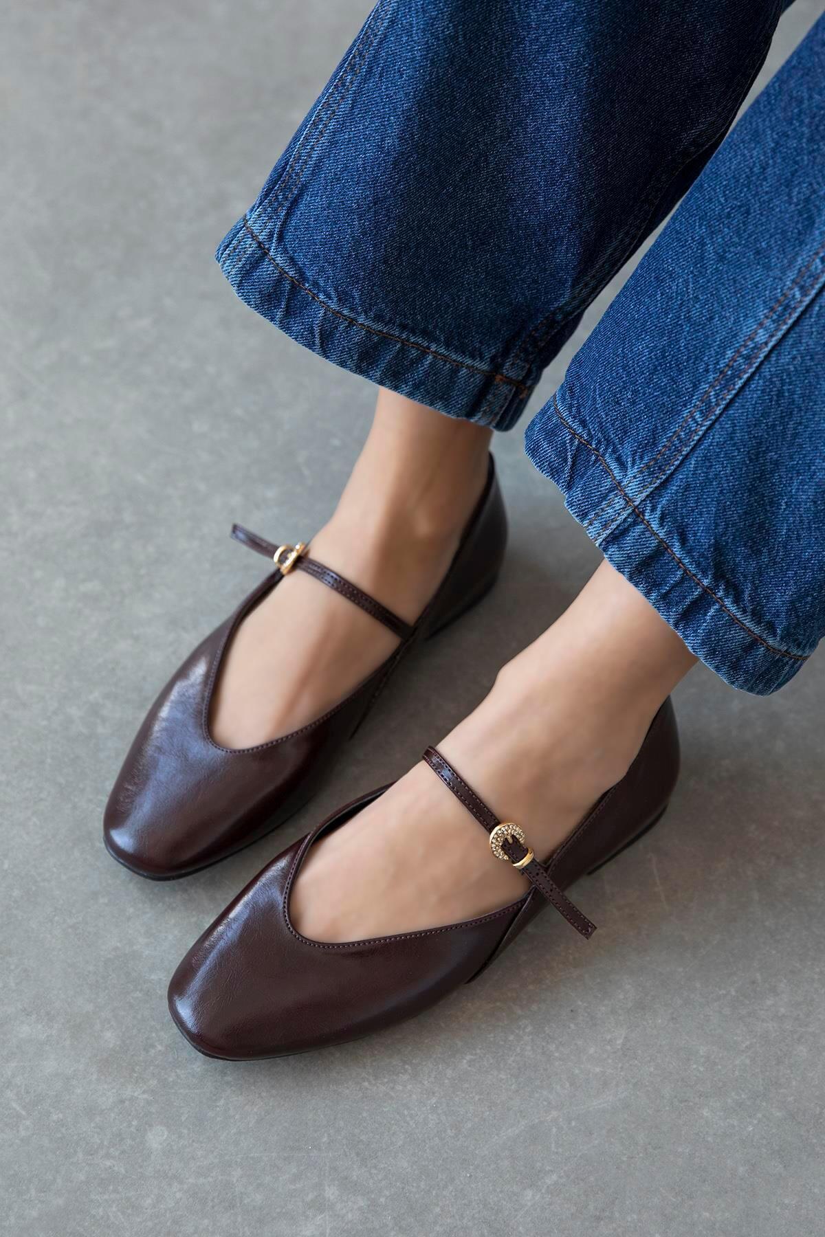 Evve Kadın Toka Detay Kırışık Deri Babet Bordo Evve Kadın Toka Detay Kırışık Deri Babet Bordo BB3400KŞ 40