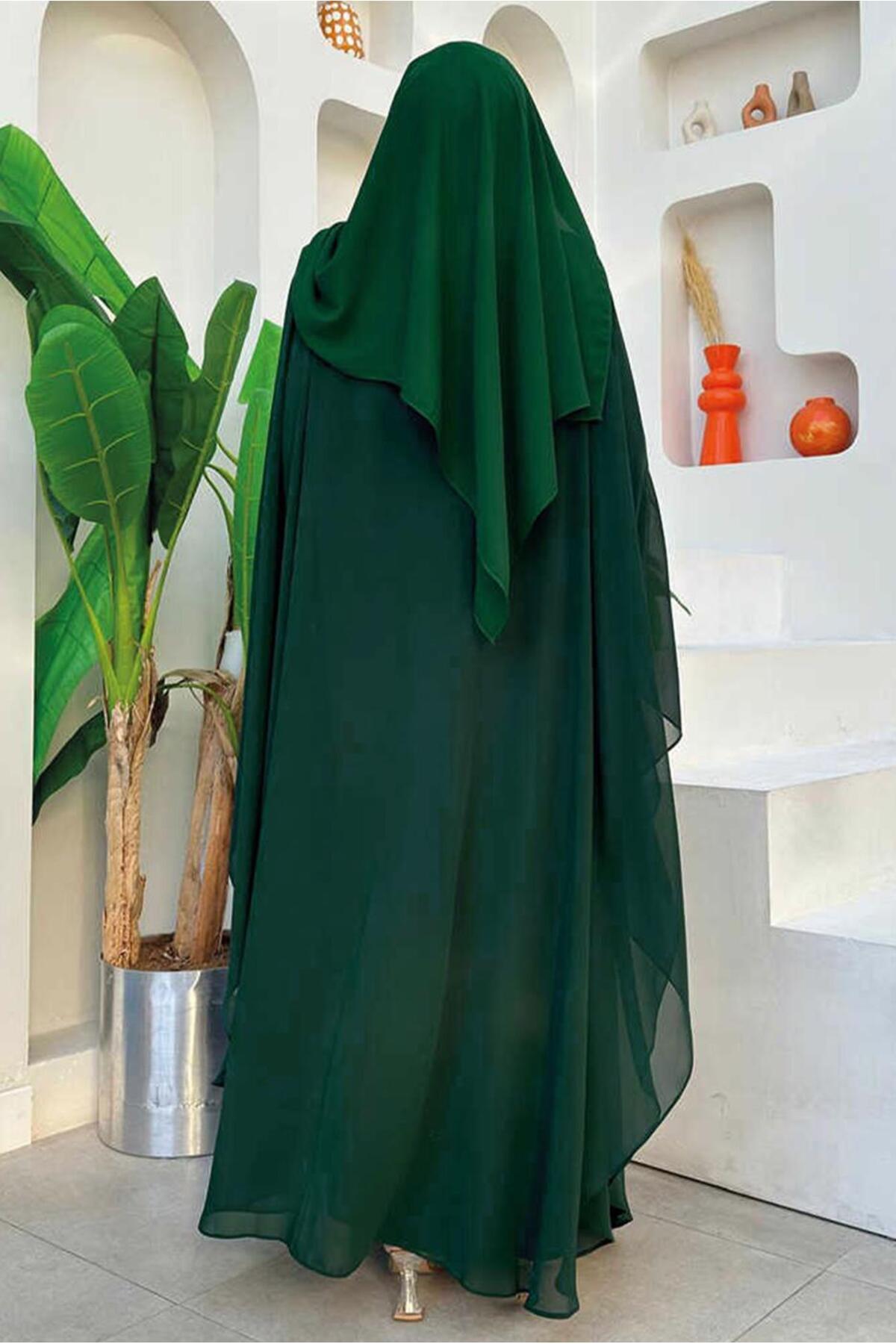 KADIN YEŞİL (ZÜMRÜT) ŞİFON PELERİNLİ ELBİSELİ ABİYE TAKIM T 1563-1 KADIN YEŞİL (ZÜMRÜT) ŞİFON PELERİNLİ ELBİSELİ ABİYE TAKIM T 1563-1 23YELBTR1563-1 2