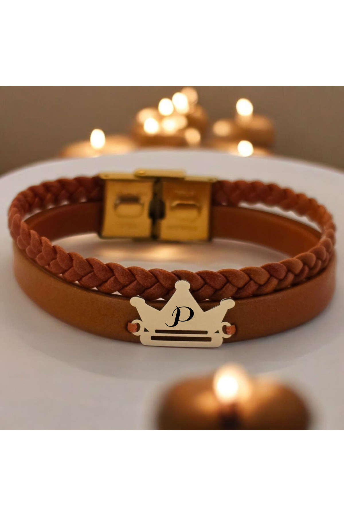 Altın Plakalı 14 Ayar I Harfine Özel Taç Motifli Doğal Derili Hediye Bileklik-467harf-kahverengi Altın Plakalı 14 Ayar I Harfine Özel Taç Motifli Doğal Derili Hediye Bileklik-467harf-kahverengi harf-467-kadeta-fofg-MO2 22 cm