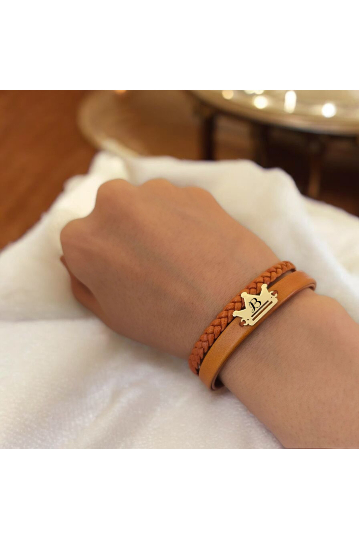 14 Ayar Altın Plakalı B Harfine Özel Taç Motifli Doğal Derili Hediye Bileklik-467harf-kahverengi 14 Ayar Altın Plakalı B Harfine Özel Taç Motifli Doğal Derili Hediye Bileklik-467harf-kahverengi harf-467-kadeta-fofg-MO2 22 cm