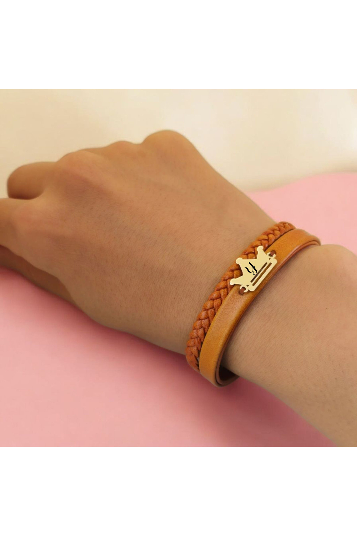 Altın Plakalı 14 Ayar Y Harfine Özel Taç Motifli Doğal Derili Hediye Bileklik-467harf-kahverengi Altın Plakalı 14 Ayar Y Harfine Özel Taç Motifli Doğal Derili Hediye Bileklik-467harf-kahverengi harf-467-kadeta-fofg-MO2 22 cm