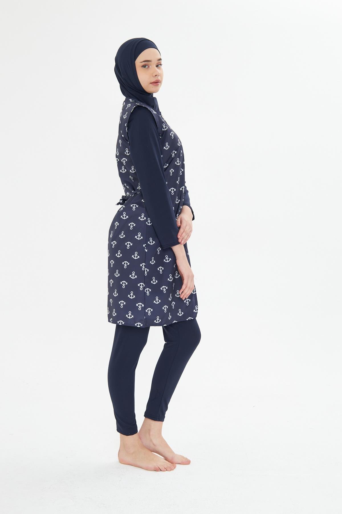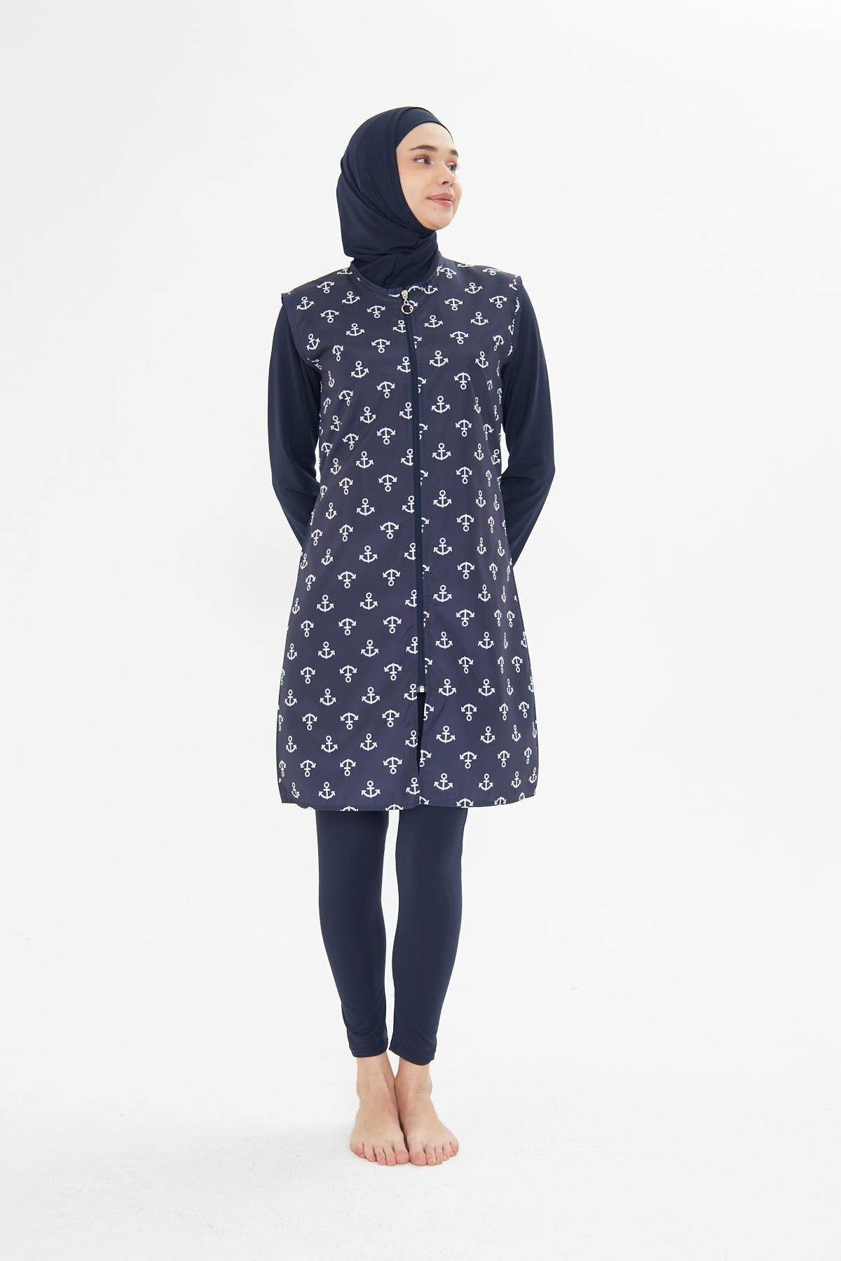 Tam Kapalı Yelekli Desenli Paraşüt Kumaş Tesettür Mayo Lacivert 3473-L Tam Kapalı Yelekli Desenli Paraşüt Kumaş Tesettür Mayo Lacivert 3473-L 2XL