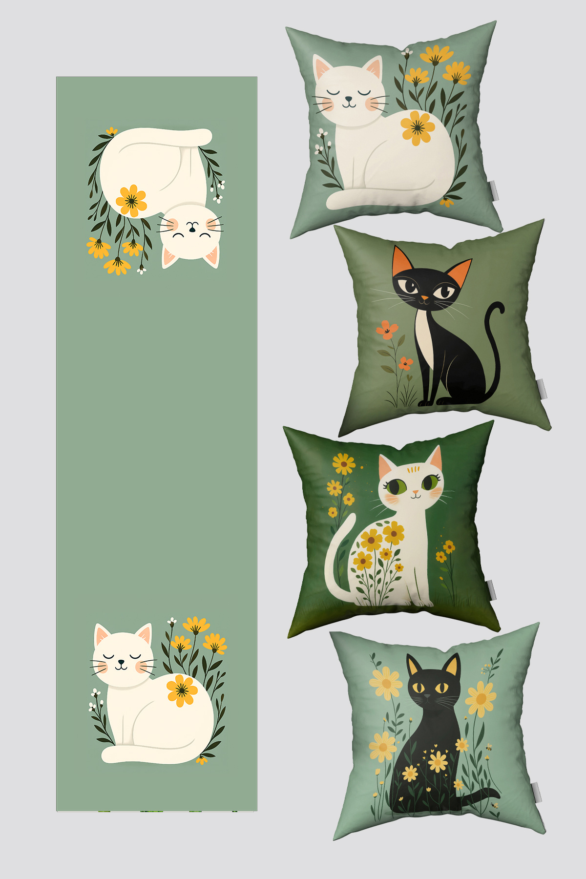 Yeşil Sevimli Kedi Figürlü 4'lü Kırlent Kılıfı Seti Yeşil Sevimli Kedi Figürlü 4'lü Kırlent Kılıfı Seti EA1148-KRSET4 50 x 50