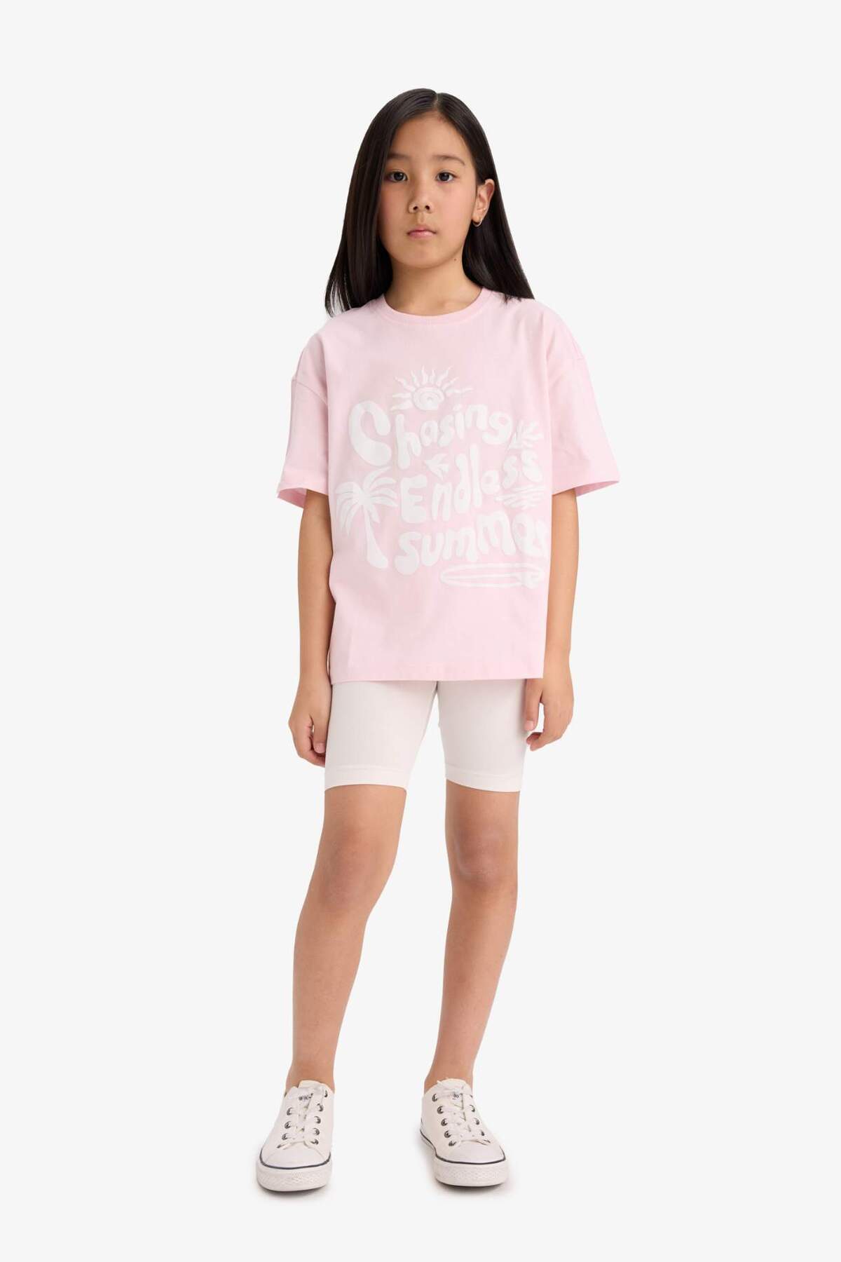 Kız Çocuk Oversize Geniş Kalıp Bisiklet Yaka Baskılı Kısa Kollu Tişört E0392A825SM Kız Çocuk Oversize Geniş Kalıp Bisiklet Yaka Baskılı Kısa Kollu Tişört E0392A825SM 13-14 Yaş