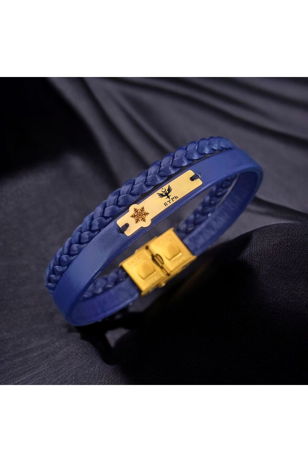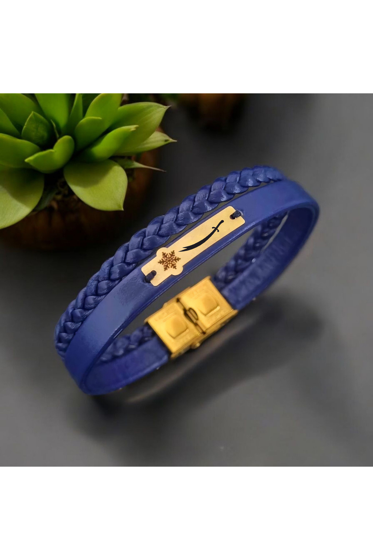 14 Ayar Plakalı Altın Dikdörtgenli Özgün Erkeklere Özel Derili Zülfikar Bilekliği-435sembol-lacivert 14 Ayar Plakalı Altın Dikdörtgenli Özgün Erkeklere Özel Derili Zülfikar Bilekliği-435sembol-lacivert 435-mavkarderi-mmg-MO3 22 cm