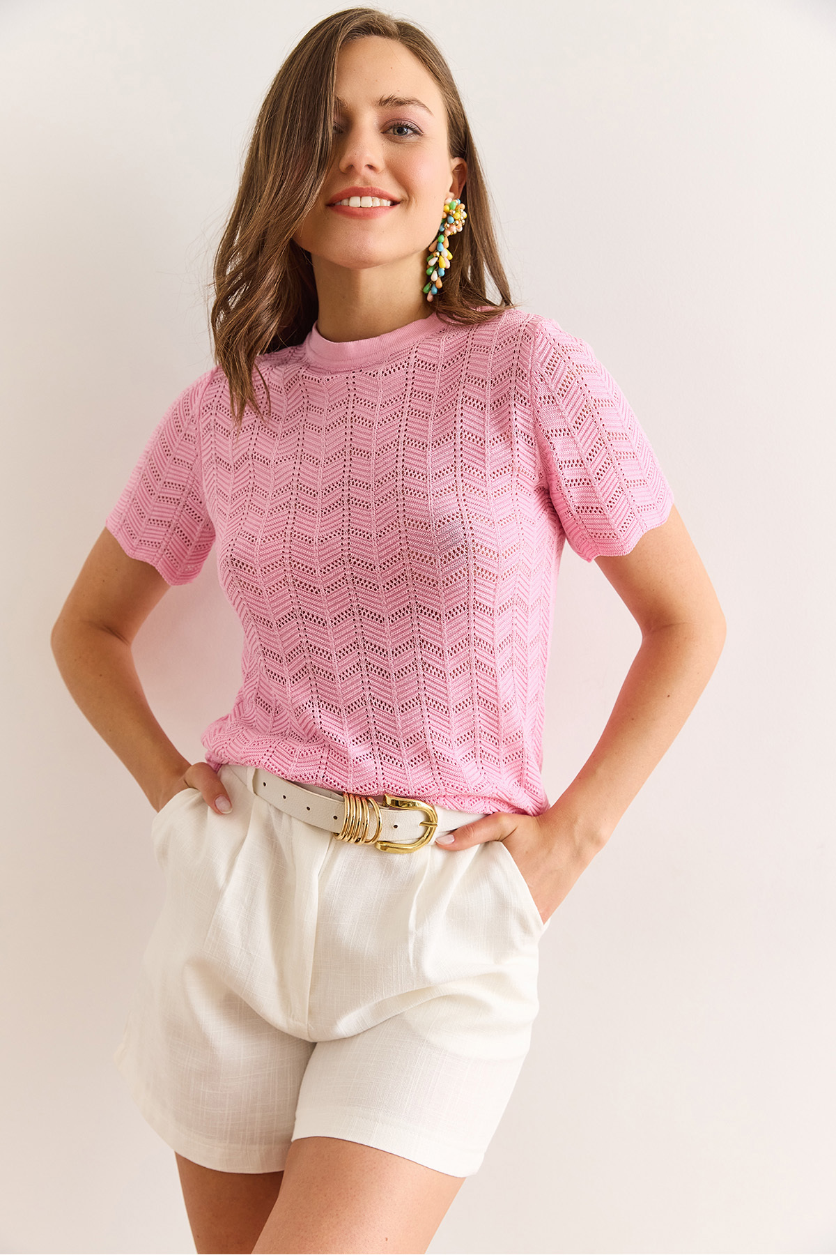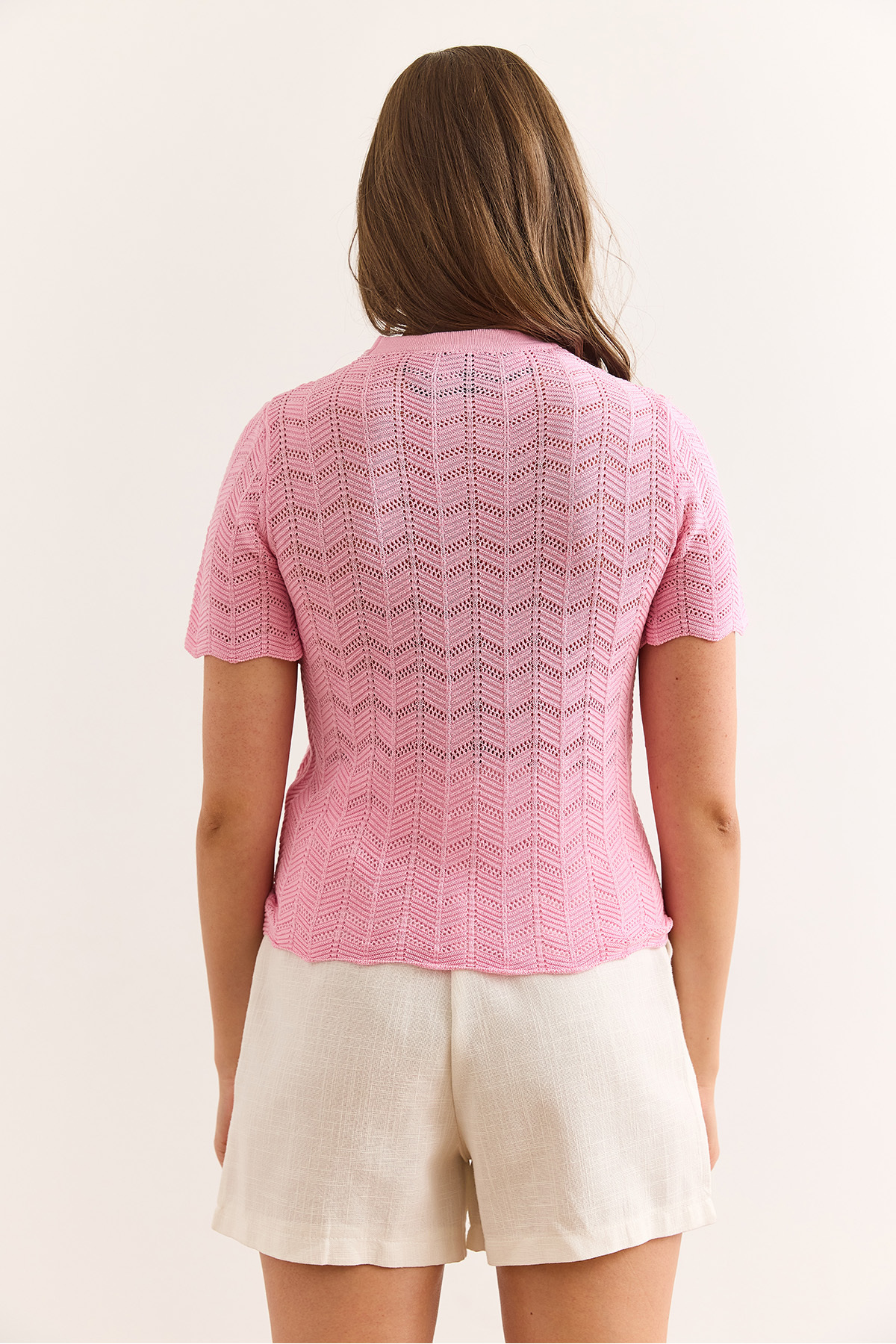 Kadın Şeker Pembe Zigzag Ajurlu Merserize Viskon Triko Bluz BLZ-19003010 Kadın Şeker Pembe Zigzag Ajurlu Merserize Viskon Triko Bluz BLZ-19003010 تک سایز